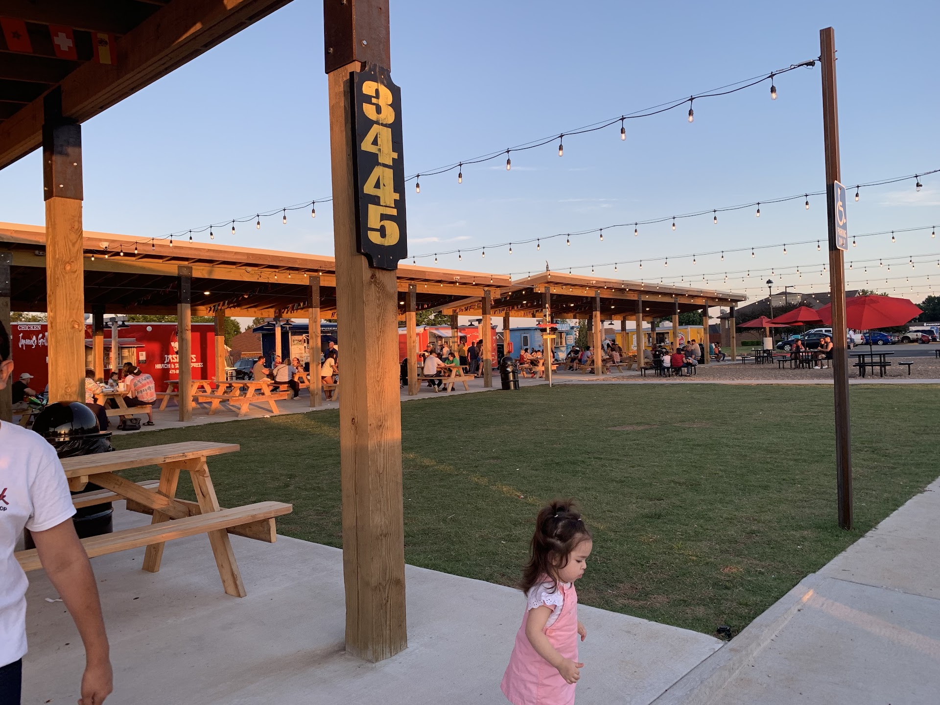 Read moreNice location with multiple food trucks. Whatever your cuisine, you can find something to eat here. It looks like they normally have seven or eight trucks with cuisine from Mexico, Asia, American. But, don't think because it's a food truck it must be really good. We tried the pupusas and my wife loved them. Thought they were one of the best she's ever had. I had a hamburger that was overcooked but fortunately had good flavor in the meat. It's nice that they have covered areas and picnic benches during the hot sun. It made it bearable but wish they had some type of ceiling fans that would help move the air. One thing that is missing...