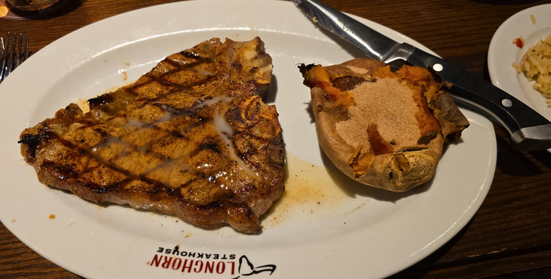 My wife ordered the Cowboy Pork Chops with NO seasoning or anything else, just grilled and plain. When they were brought to the table by the server there was a heavy layer of brown jiz on top of the chops; the server said it was "love butter" put on by the cooking staff. My wife tasted it which was nasty and off-putting to her. The pork chops were taken away and replaced with a new 'smaller' order of barely warm chops. I guess the customer gets "PUNISHED" by the kitchen staff when an item is returned and not made as the customer orders it. My meal was almost finished until her replacement chops came out; $18.29 wasted... The bread was hard and over-baked. The salad was not fresh and crisp as it normally is at Longhorn.