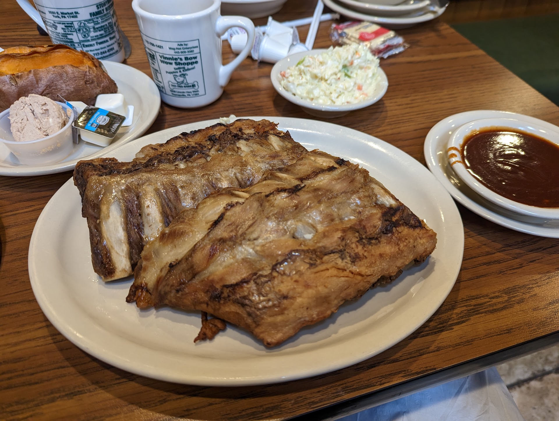 Read moreWe just moved to York, and were looking for locally owned restaurants. This place was about 20 minutes from us, so we decided to try them. We got there at 5:00-ish, right in the midst of the dinner rush. We waited for about 15 minutes to be seated. The person seating us took our drink order, and it took pur waitress about 5 minutes to come to us. They were busy, we do get that. Service was great, thanks Lesli! The food: I started with a cup of Maryland crab, it was not traditional Maryland crab (we moved from Baltimore, we know Maryland crab!) This soup fid not have that tomato-ey, beefy rich both. It tasted more like it was made with chicken broth. It was tasty, but not Maryland style. Hubby had the gyro- only 2 slices of meat, and a loaded sweet potato (it was small but good). I had the stuffed chicken breast. The stuffing was homemade but needed a bit more seasoning. The chicken breast was tasty, but a bit over-cooked/dry, and only had about a tablespoon of gravy over it. It needed more. My baked sweet potato a day pickled beets were good. Atmosphere: the establishment was clean and well laid out. Booths were roomy which was nice for this big girl! They do have counter...