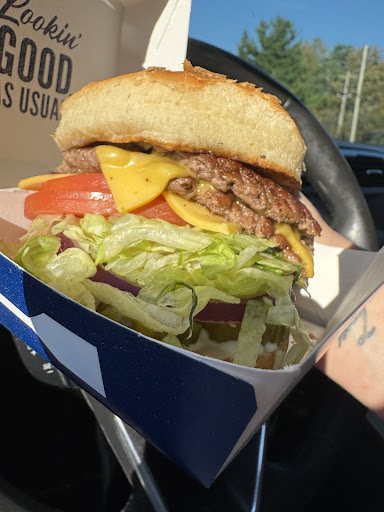 The food was pretty good. I got the hamburger on sourdough, and my husband got the bacon deluxe. The hamburgers weren't bad, I just didnt find the hamburgers or fries really something to rave about. I would consider the hamburgers as satisfactory. They came with no sort of sauce on top, given it was my first time ordering from here, so that could be my fault not knowing what all to expect. I definitely reccomend napkins because it is a very greasy hamburger. We got the crinkle cut fries and an order of the cheese curds. The cheese curds are better than the fries in my opinion. We also tried their tea and 2 shakes. Their tea is not sweet, which is just sinful 😂 lol (just being funny, but if you want sweet tea, ask for sugar packets.) We tried the Reesey's chocolate shake and a strawberry shake. Both were good! The only thing I have to say is the prices are a little high, in my opinion. I believe it was almost $5 for a small shake. And like $3-$4 for an order of cheese curds. I feel like the shakes at stake and shake are more worth it for that price. But I wouldn't say that are bad. If you sign up with an account, do all the setting up, and they will send you a B1G1 meal. With that coupon and all the food that we ordered, the total was roughly $35. I still believe it is still a good restraunt and good food, even if I find the prices to be a little bit on the pricy side, I would still recommend people to try them and see what you think. They have a lot of options rather than just hamburgers which is great for it being fast food. They have a lot of variety...
