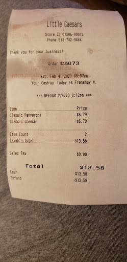 Read moreI called my order in. I waited in the drive thru for easy pick up. I was in line for almost 25 minutes. Then when I got to the window, nobody greeted me to even tell me it was going to be a few minutes. So I beeped and a man came to the window and he looked up my order, it wasn't ready. It was already about 15 to 20 minutes past the time they told me it would be ready. The man told me that my order was coming out in a few minutes. I waited another half hour without anyone telling me what was going on. The only reason I didn't go inside is because I am disabled and I can't walk that well with something in my hands. So even if you call in your order, you'll probably have to wait. I would suggest going to another little Caesars. These days customer service sucks not just at this place,...