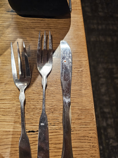 Rather than continue to stand at the table we went to the entry to await our fate. As we waited, another couple walked in and was immediately seated at a booth (#205 or something) on the other side of the restaurant. After more waiting they told us, "you can have booth 311." When they took us to booth 311, a guy was still bussing it. I suggested that we could instead sit at one of the other two perfectly clean booths right next to it. "Oh, no, those booths are closed." Back to the entry again to await our fate from the people trying to get the manager's permission.