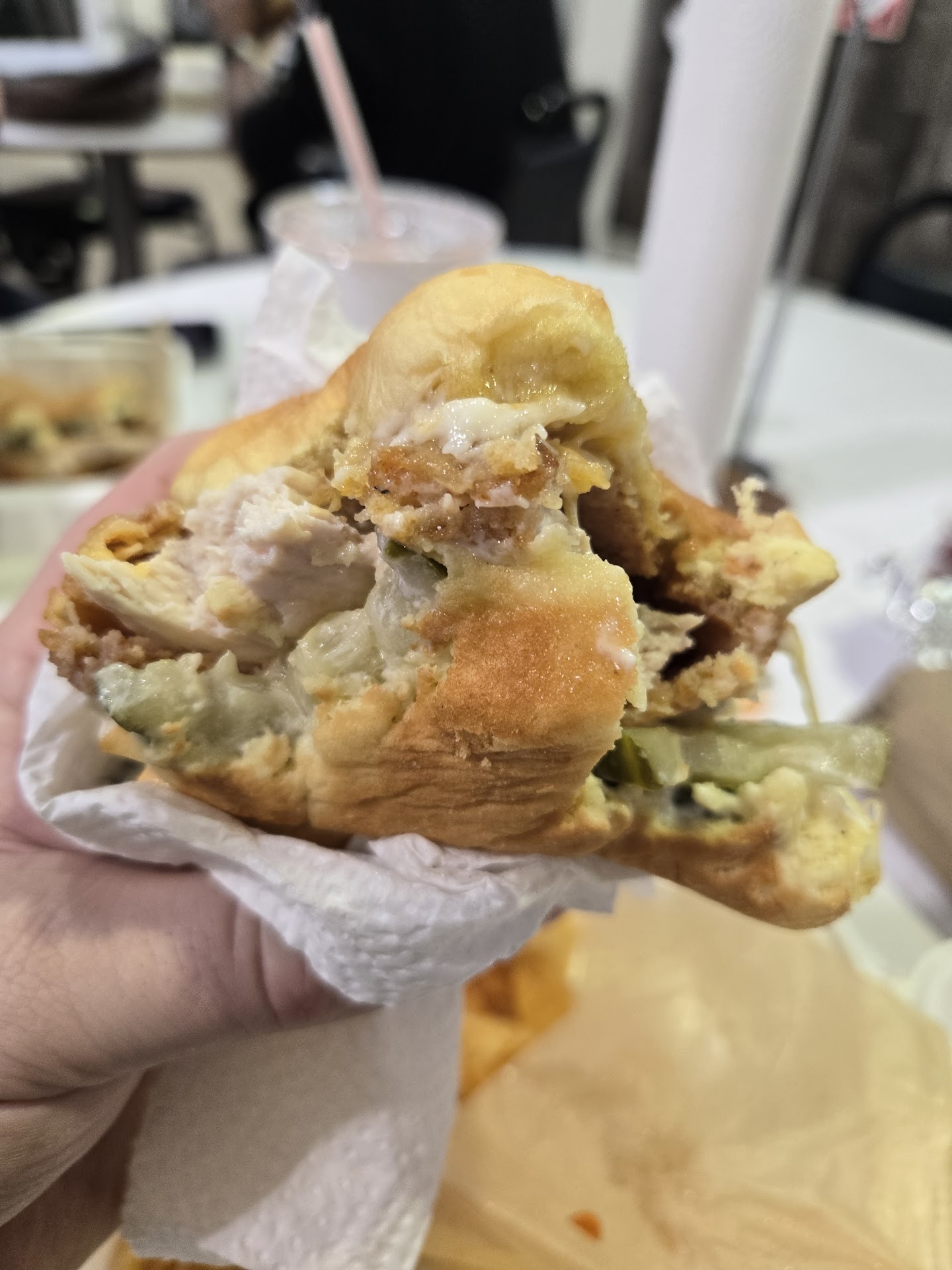 Read moreService was quick and the cashier was nice enough but honestly the food was gross. Not good fried chicken at all. It really just tasted like grease and flour. I don’t know why this place has so many good reviews. They upsold us on the fried potatoes and honestly, I wish I did not buy them. Totally underwhelming and not even crispy. Also, I know chickens have feathers and I understand if they’re butchering their own birds that it’s not always going to be perfect, but when I have to PLUCK OFF little chicken hairs, I just will not be eating it. I feel bad for wasting food but I had to throw it all away. On the flip side the sweet tea was good! So, yeah…mediocre chicken at a pretty high price. Maybe I just caught them on an off day? Don’t know, but will NOT be returning. The Amish BBQ down the aisle is much better...