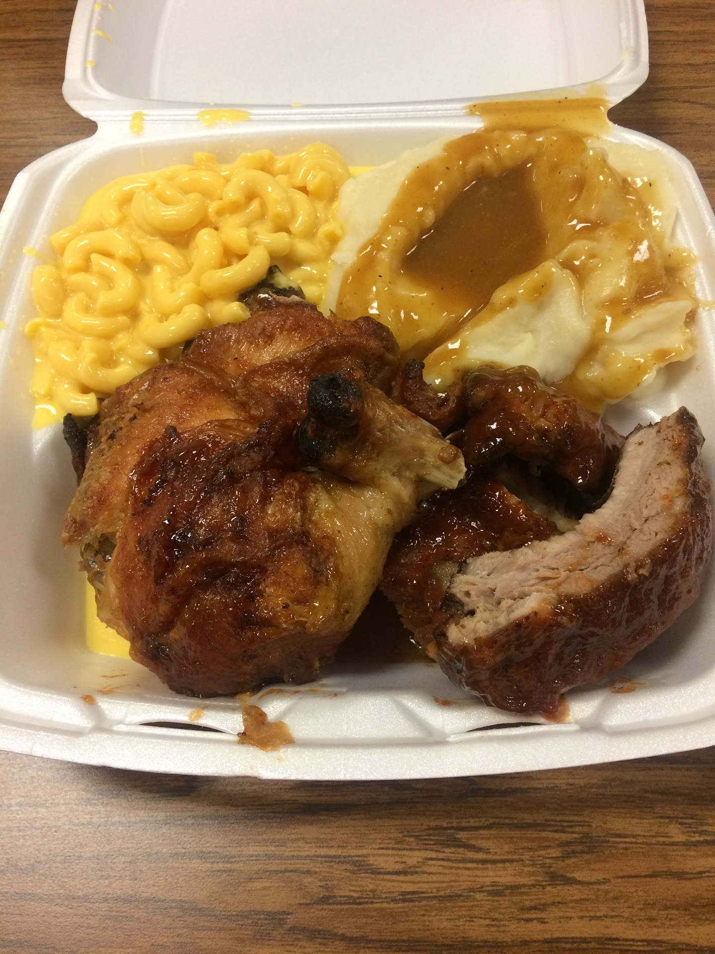 Read moreJust stopped here with my boyfriend. Prices were very reasonable for the quality of food. I got the BBQ chicken leg+thigh combo with Mac and cheese and roasted potatoes. I do recommend asking for some BBQ sauce on the side for the chicken. The Mac and Cheese was fire, just needed a little salt for my taste. THE ROASTED POTATOES THOUGHâŚOMG. I donât know what the hell they did to those potatoes, but they were amazing. They were just plain little potatoes but had so much flavor. The ribs were fall off the bone and so tasty. I will 100% be coming back and trying their other offerings. YUM. (Best part is you know itâs real food. You can taste that homegrown...