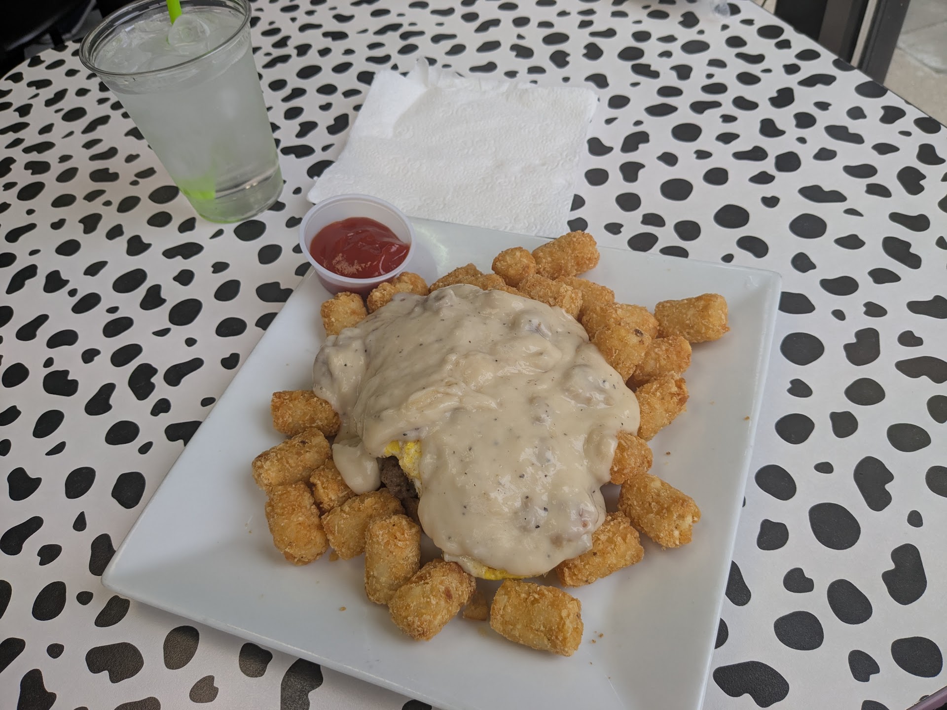 Visiting for late breakfast on a Tuesday, my companion and I enjoyed a fried egg sandwich with tater tots as well as a breakfast sandwich with the choice of bacon & tator tots. Of course we couldn't resist the lazy day's temptation of mimosas & a bloody mary. While the Bloody 'el wasn't as spicy as we'd thought it might be, staff was generous to accommodate some more heat when requested.
