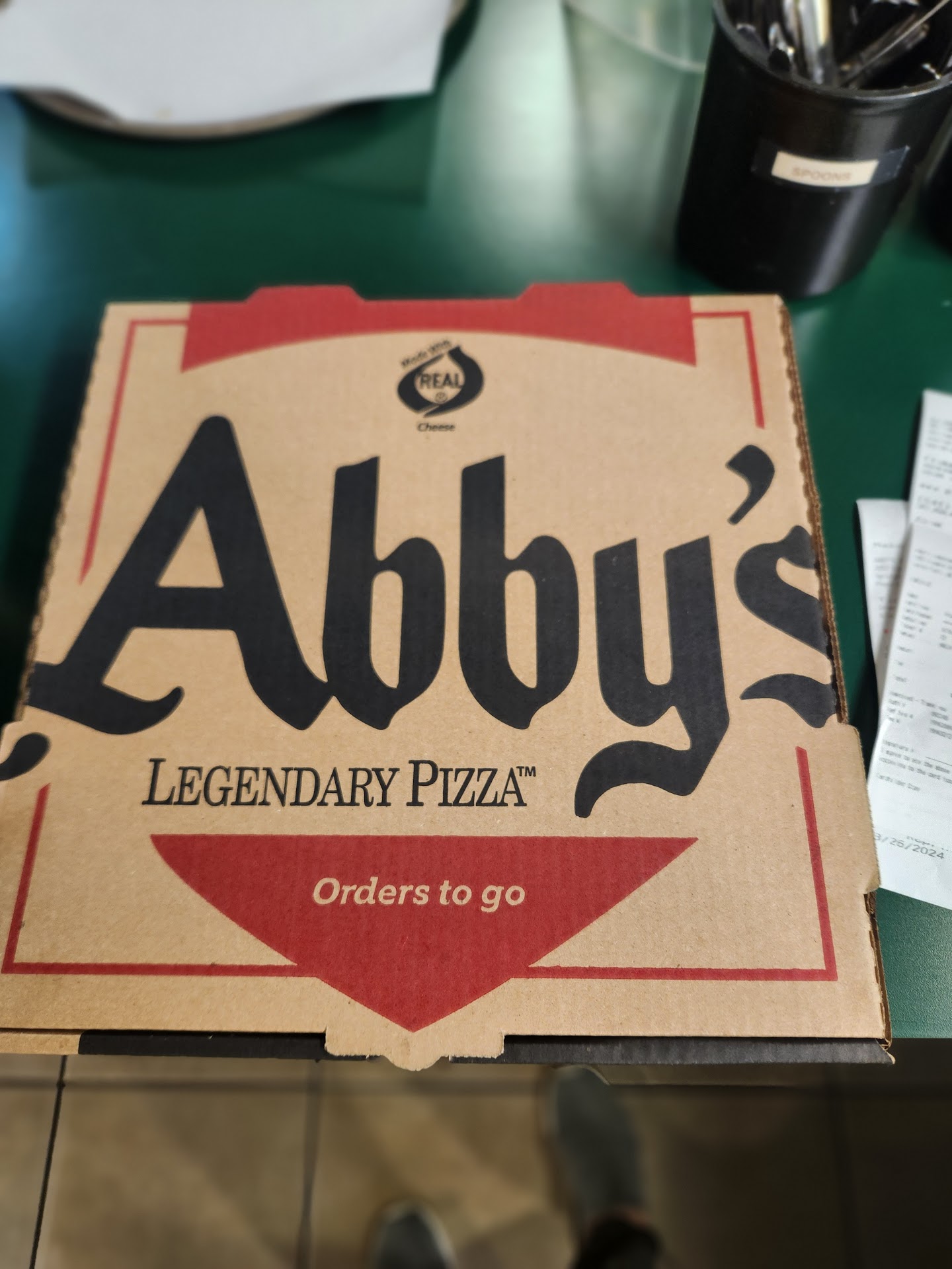 Read moreAbbys used to be my favorite pizza place, especially for their taco pizza. However, their recipe and ingredients have changed dramatically. I ordered a taco pizza, and it isn't the same. The meat is fakee, or at least tasted fake. Instead of hamburger crumbled on top, it is hamburger ball grossness. The serving of cheese was about 2 tablespoons worth that didn't cover my small pizza at all, the tomatoe slices were half rotten and grainy. The only topping that was normal was the giant serving of lettuce. There was one onion slice on the entire pizza. The sauce was thinly layered and dry. The crust was half burned and dry. The olive slices were about 8 in total. This depressed me because i treated myself to a $20 small pizza for graduation, and it was not my usual taco pizza. Frankly, it was gross. The service was great and fast, perhaps they had to change vendors due to inflation, but this was utterly ridiculous. I do not recommend Abbys to anyone unless you enjoy dry pizza with...