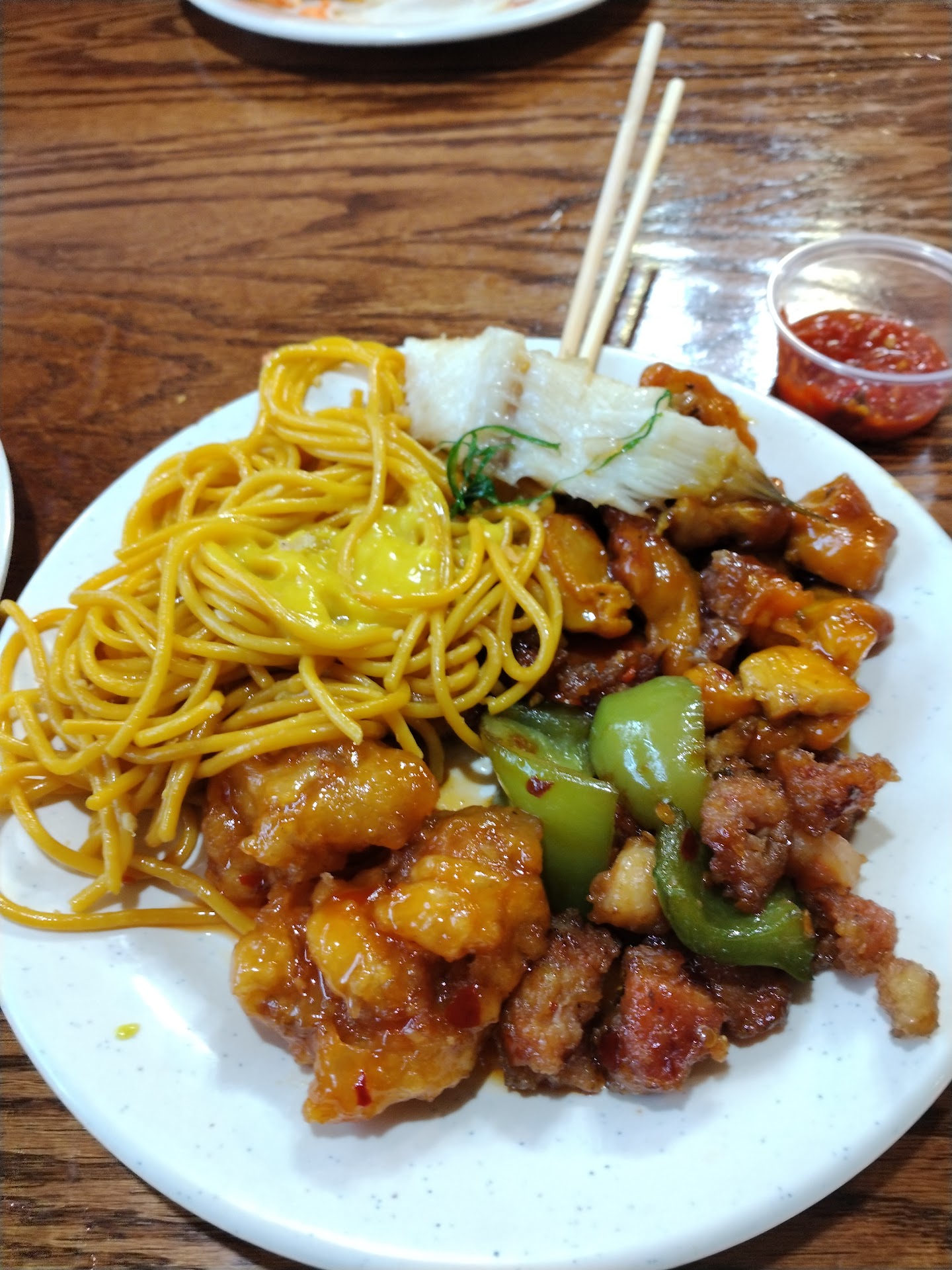As for the food, most of what I tried—Hibachi chicken, beef with broccoli, spicy shrimp, and other chicken dishes—was lukewarm, bland, or tasted slightly burnt. I went back to try a few more items hoping for better results, but it was more of the same.