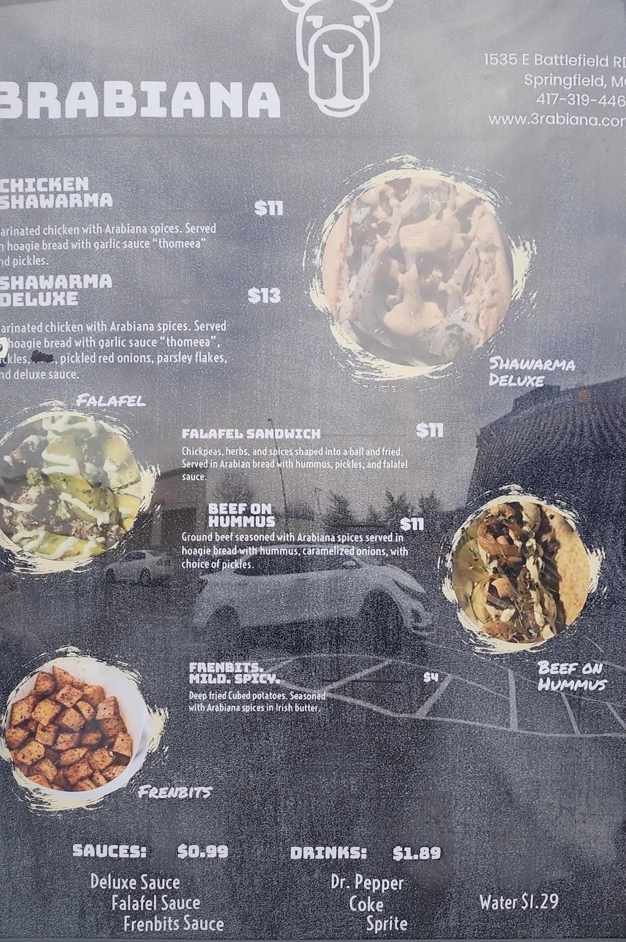 Read moreFirst off. It's a food truck, no window either so I was skeptical, the girl working there didn't say what region of Arab (the culinary spread is varying across the Middle East and North Africa) but! The food was surprisingly good! Better than the 2 other Arabic places I've been to in Springfield. Meat portions in the shawarma was fantastic! (They should add pickles and onions) the falafel was soft yet crispy (could have packed the entire bread but still acceptable) all in all I'll be returning. It's...