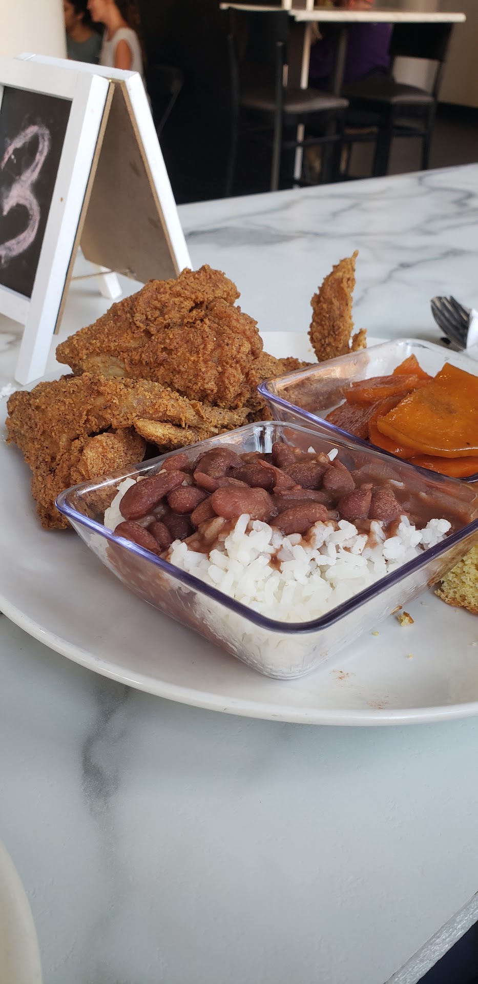 Read moreMy overall experience was a 7.5/10, the atmosphere was nice, relaxing and welcoming. The service was good everyone that worked there was nice and made sure everything was tasting to my liking and if I need anything additional. However, the food was good but there is room for improvement. Nevertheless, it was good food for the price I paid. $26 for an entree meal that comes with TWO sides and cornbread and an alcoholic beverage.( most soul food places only come with one side and you’d have to buy everything else additional so that was a huge plus during this visit that I appreciated.) Thats a deal you can’t beat I’d prefer my sweet potatoes a bit more in the sweeter side but they were a 6/10, Mac and cheese was a 7/10 (me personally I like stringy Mac), the cornbread was 7/10 nice and warm and sweet and the the fried fish was a 10/10 the batter was light and crispy but packed full with flavor also the size of the catfish was a decent size as well. As for the alcoholic beverage ( blue shut yo mouth the name of the drink) it was a 5/10 not too strong but good. However, I will be visiting again in due time when things have changed a bit but over it is a good place to eat nice environment as well as costumer service. Follow me on TikTok @kdmillions to check out my food review on...