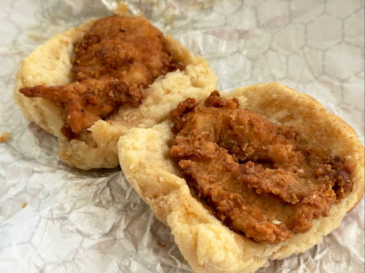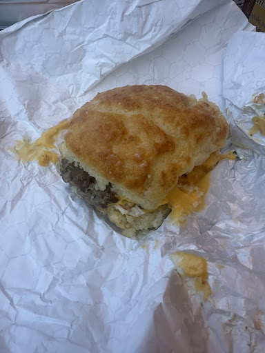 I ordered the honey chicken, egg & cheese biscuit, and oh my stars, it was unreal. I even asked for a side of extra honey just for dipping the biscuit--and wow, it was like dipping clouds in sunshine. The biscuit itself? Massive. Like, imagine four McDonald's biscuits all stacked into one glorious beast of breakfast. No joke.