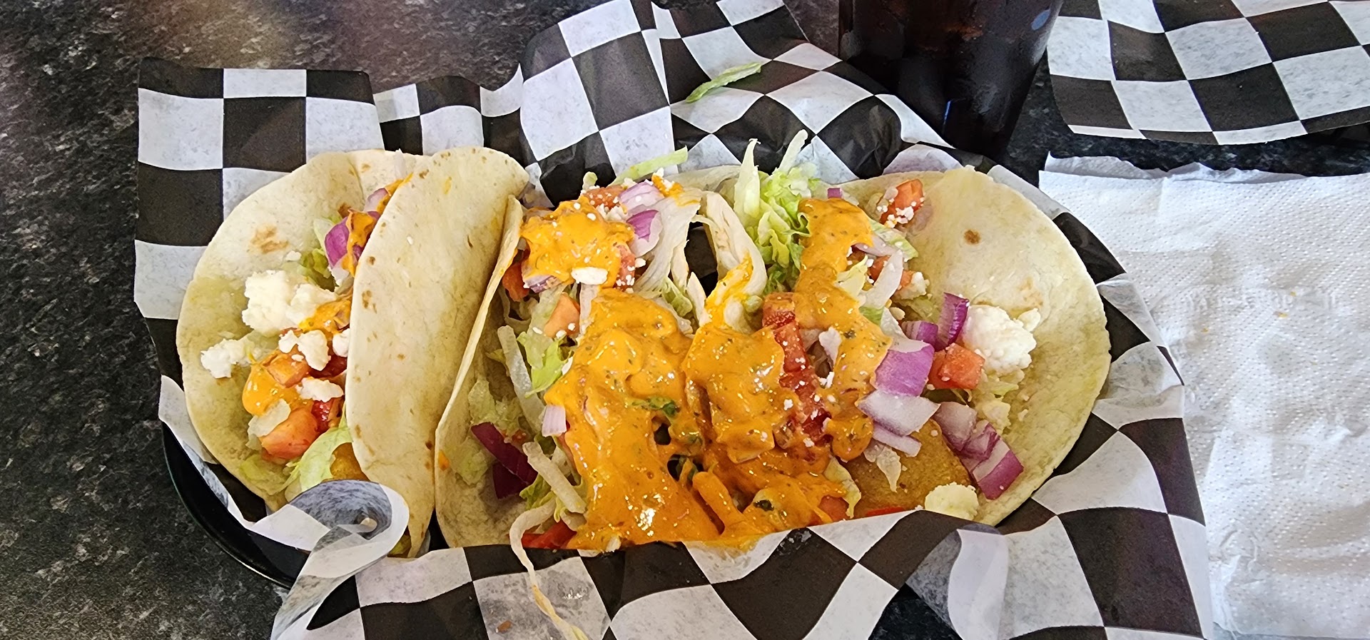 Came in for taco Tuesday. Simple yet great tasting loaded tacos and at $1 each it's hard to complain. The smothered sancho was also delicious but a challenge to eat only given a plastic fork. Tried my daughter's chili and as someone who loves homemade chili this one was rather disappointing. Didn't taste chili spice at all & more like tomato. Service itself started off great. Server greeted us & took our drink order rather quickly. Different server brought our drinks & took our food order. Food came out relatively fast. Another family came in & sat behind us. After not being greeted a prolonged period of time they got up & left. At the same time I was getting frustrated bc we were sitting with empty cups for just as long. I noticed the group at the table in front of us sat with empty cups our entire time. I finally took our cups to the bar for refills. We were there early and it didn't seem overly busy. Maybe need additional staff or better use of current staffs time? Overall a positive experience and...