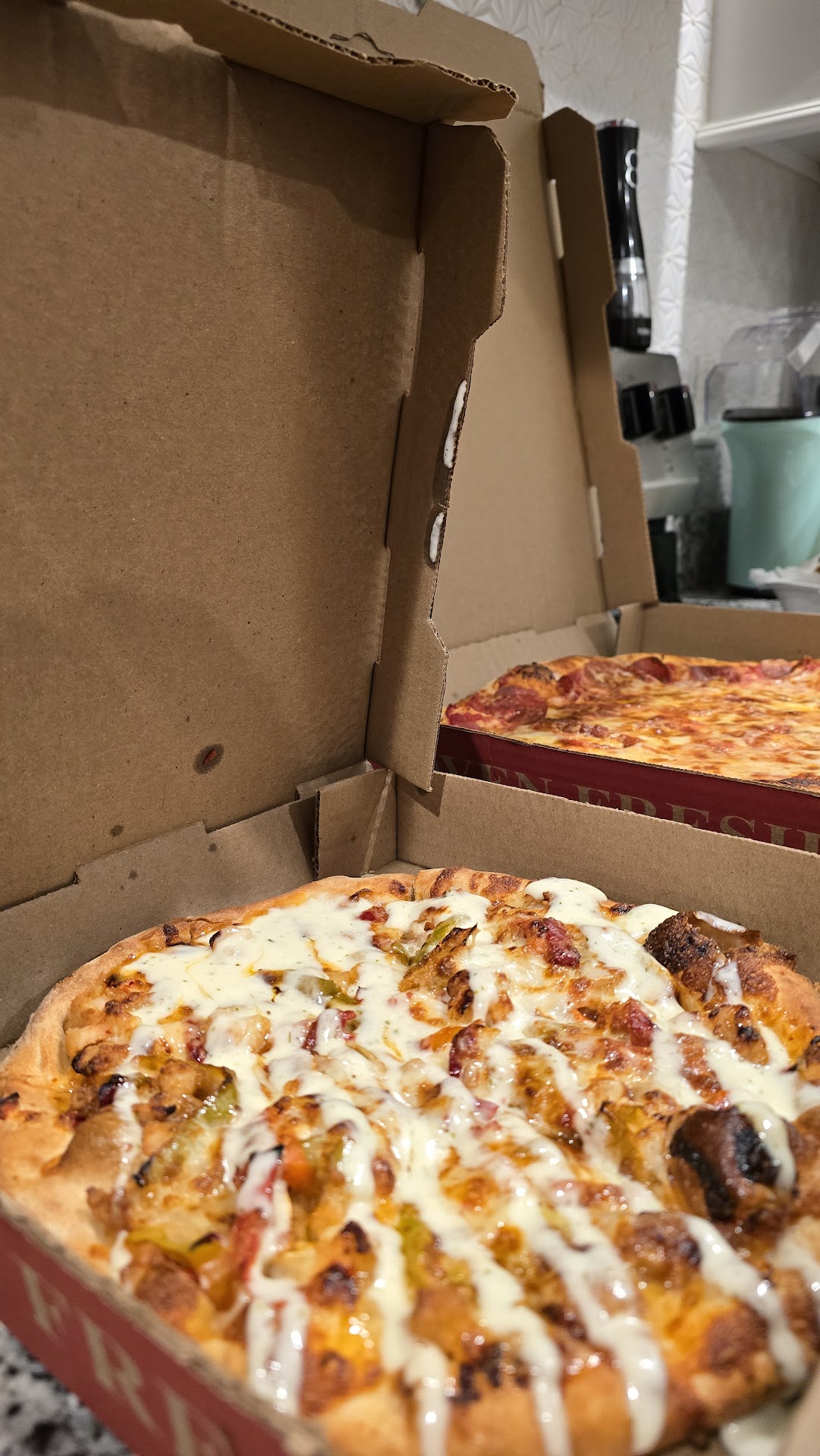 Read moreThis was our first time eating at Bruno’s but we recently attended a kids bday and my son has been raving about the pizza ever since. So we ordered quite a few things to try. Loved the online ordering system. Super easy and convenient. The people, my husband said were great and just as described in the reviews. The food turned out to be great. The only loss of star is for quality control as there was a red twisty tie embedded in my husbands chicken parm. This won’t prevent us from coming back however it was a little concerning. It was red so it blends in with the sauce and almost looked like a piece of tomato at first until you poke with fork and realize it was stiff. We will give another shot based on the other redeeming...
