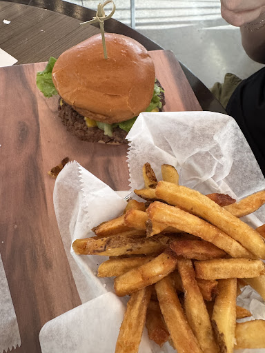 The food was amazing! We had a couple of burgers, a jalapeño popper appetizer, and waters—all for around $35. The garlic smash burger was excellent—rich, but not overly so. The Plain Jane was also a great burger; all the vegetables were fresh and in season. The jalapeño poppers with berry sauce were fantastic. Everything was super fresh, hot, and served without any issues. The fries were also very good. Well worth the money in our opinion.