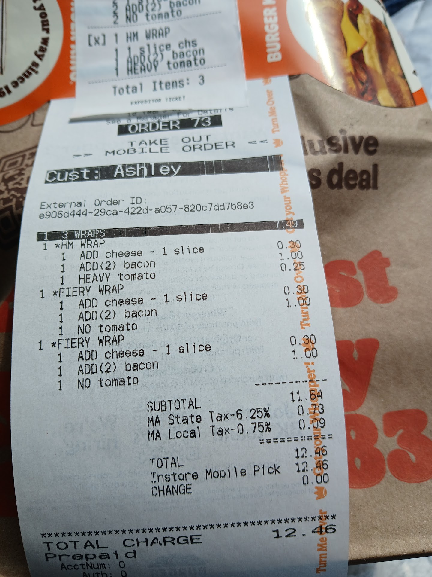 Ā Ā Ā Read moreSo, I am a regular customer at BK. If I don't order breakfast, I order lunch every single day. Now, what I don't understand is how my wife order always comes out perfect, but my order is never right. On the app gives you the option of bacon and cheese on all wraps, and thankfully, this store got that right but didn't give me the right kind of chicken. My order clearly said I ordered fiery wraps, but I ended up with regular chicken. I am not satisfied that my orders keep getting messed up. And I would have come back had I not had to pick the kids up from camp. The person working the line needs to read the order correctly instead of assuming what they...
