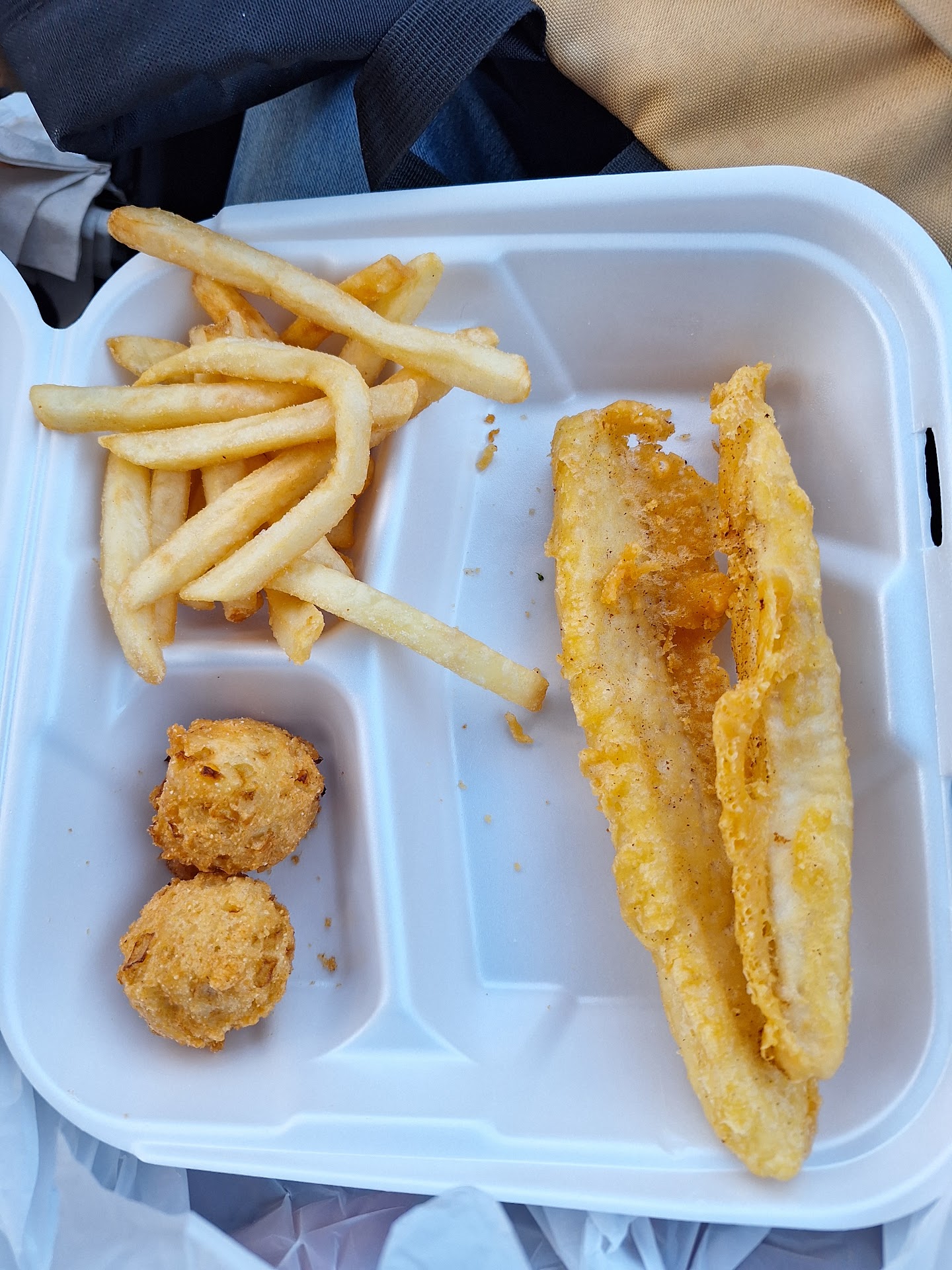I never ever give out 5 stars (I'm saving that for an upcoming banquet in heaven) but if Google would let me I'd give out 4.5 stars just for excellent food alone, although you'll find the restaurant clean, pleasant, and well-managed. Make your next urge for fish and fixin's a feast at...