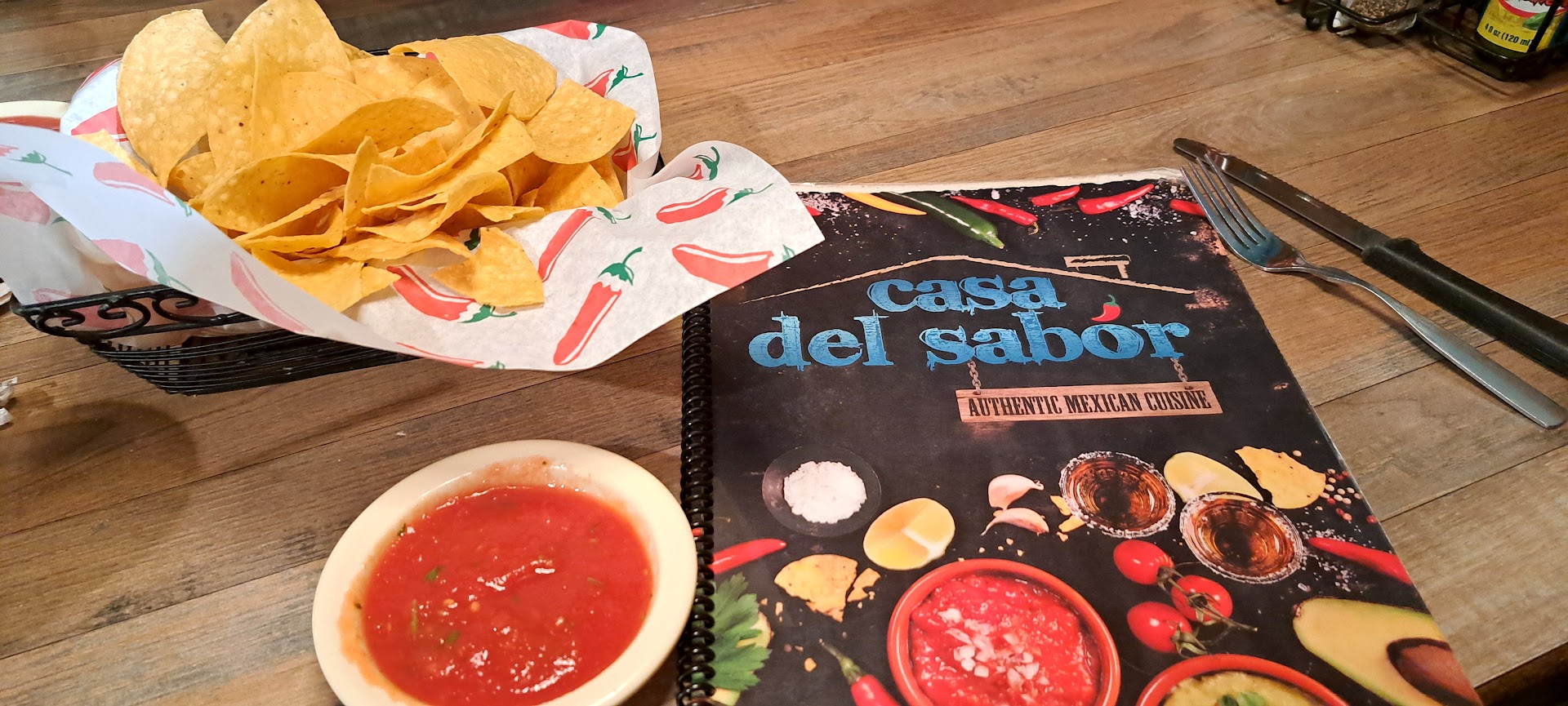 Read moreOur first time to visit this establishment and it is our now our go to Mexican restaurant! The staff was very helpful and friendly, the number of servers was more than adequate in order to keep things moving. Our visit was on a Saturday evening (no reservations taken on Sat/Sun) and the hostess quoted a 15 min wait, but we were seated with menu in hand, drink order taken and a basket of very tasty chips and salsa on the table in less than 10 minutes! Our order was prepared correctly and in front of us in about 15 minutes. The food was very tasty, plenty of it and the prices very, very reasonable. Our bill for two entre's, a soft drink (Pepsi products with free refills) with 20+% gratuity and a military discount was under $22 (under $24 without discount). In business for 6 yrs, they rely on word of mouth advertising and have a very loyal following. There is a Hot Head Burrito restaurant on the other side of the parking lot and a Taco Bell across the street and neither was busy. That was not the case at Casa del Sabor. We...