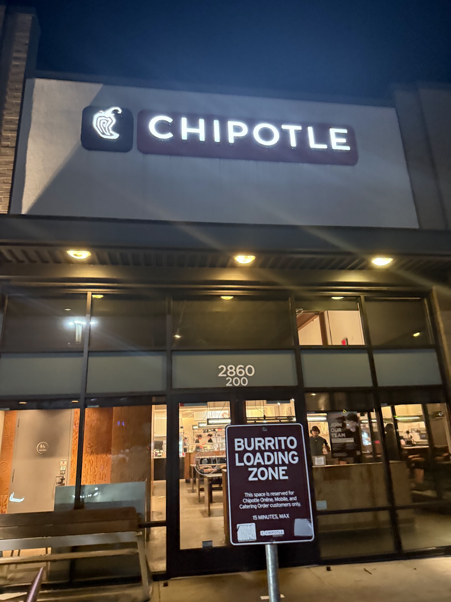 Read moreShowed up at 8:20pm to a moderate line of customers waiting to order and even as we ordered more showed up since all information on the website and door say they close at 10pm. However when hardly greeted by staff we were told they were out of all but two proteins(carnitas, barbacoa, chicken promptly ran out after I ordered my burrito) and that they would not be restocking the steak, no peppers and onions, all specialty drinks were empty, and chips were not being served anymore.