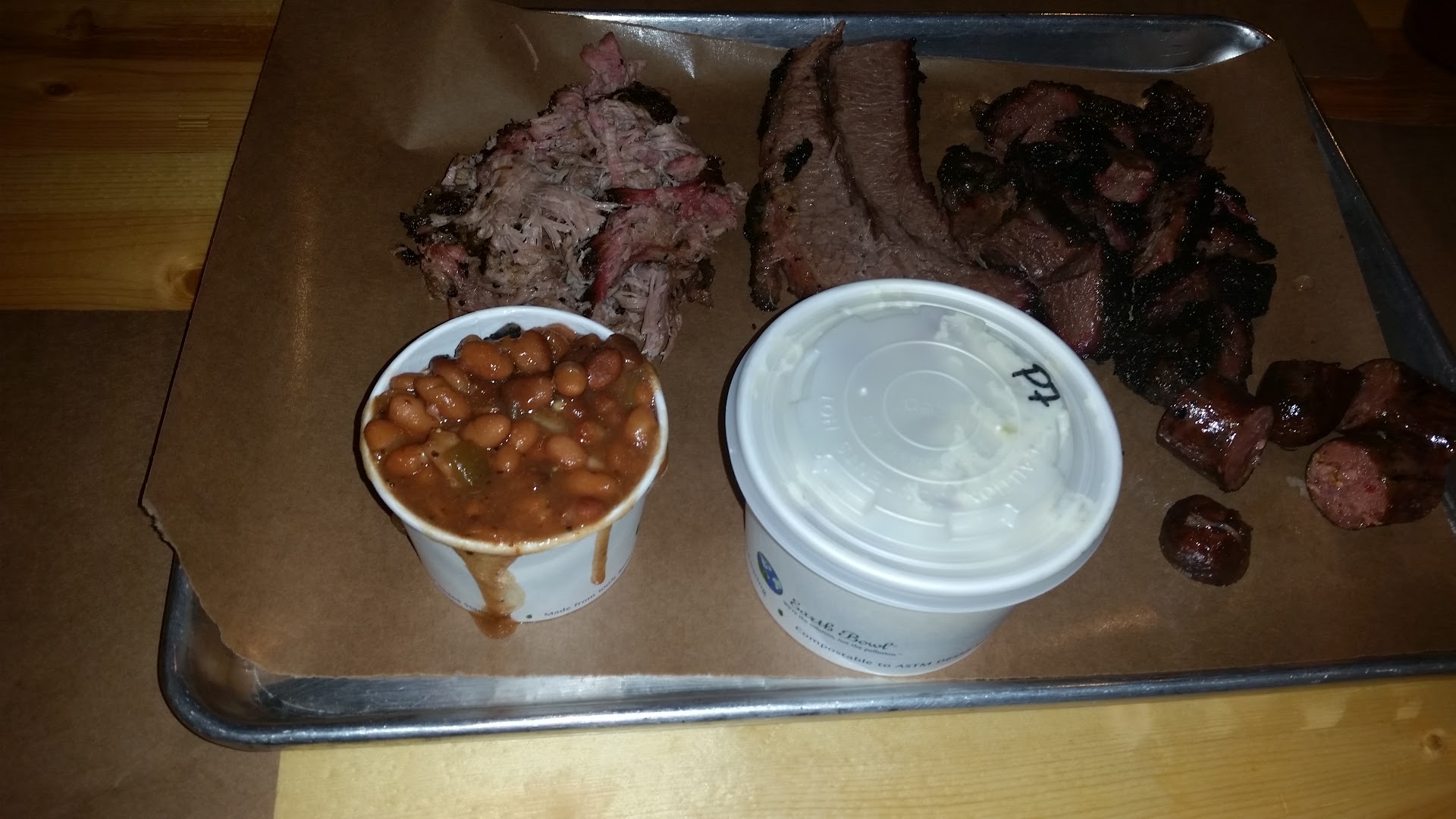 There is indoor and outdoor seating which offers a nice variety. Like most BBQ joints there is a order window and you wait in line then have seat when you get your food. The line was not long when we got there but was getting deep when we left. That's always a good sign!