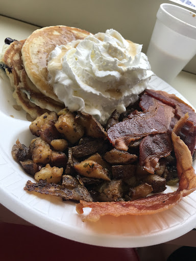 Absolutely fantastic experience. City Jake was in front of the grill with freshly gelled hair, kitchen bib on, and white New Balance shoes ready for a big day. Our orders were taken promptly and the coffee was in self serve pumpers ready to pump, when my bro asked about which flave he should try- City Jake barked “the jump start is no girly man coffee, it’s black euro”. We doubled down on his signature blend, and walked through the restaurant admiring City Jakes store-long shelves littered with Bass Fishing trophies and awards while the ambiance of a lit af grill was popping off in the background. My blueberry pancakes are an absolute 10/10 and City Jake himself suggested fresh whipped cream on the top, to which I couldn’t turn down in any lifetime. The four Midwesterners in my party noted more than once “wish we had city Jake in Kansas City.”