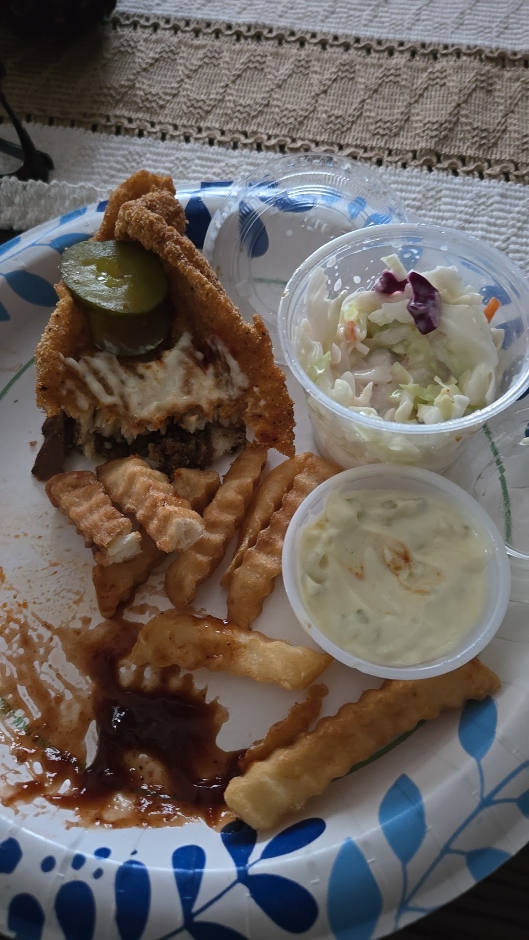 I tried the green chili. It was so flavorful and had protein in the cannoli beans. It's in a nice homemade chicken broth. It was not spicy but it was flavorful. We tried pork tenderloin horseshoe. It was moist and crunchy. Instead of fries we got homemade tater tots. Those are wonderful. I tried a brisket patty melt. So good delicious moist. I got half French fries and half homemade onion rings. And of course being the Springfield girl I had to have a side of the white cheese sauce. It is made with real monterey jack and real milk. Smooth wonderful texture and taste. Everything there is homemade. The owner was so nice and talked to us for quite a bit. Compared recipes. She has deep fried ribs. She has specials everyday. You can get the burnt ends of fajitas meat everyday. Large smoker in the back. Great place to go definitely...