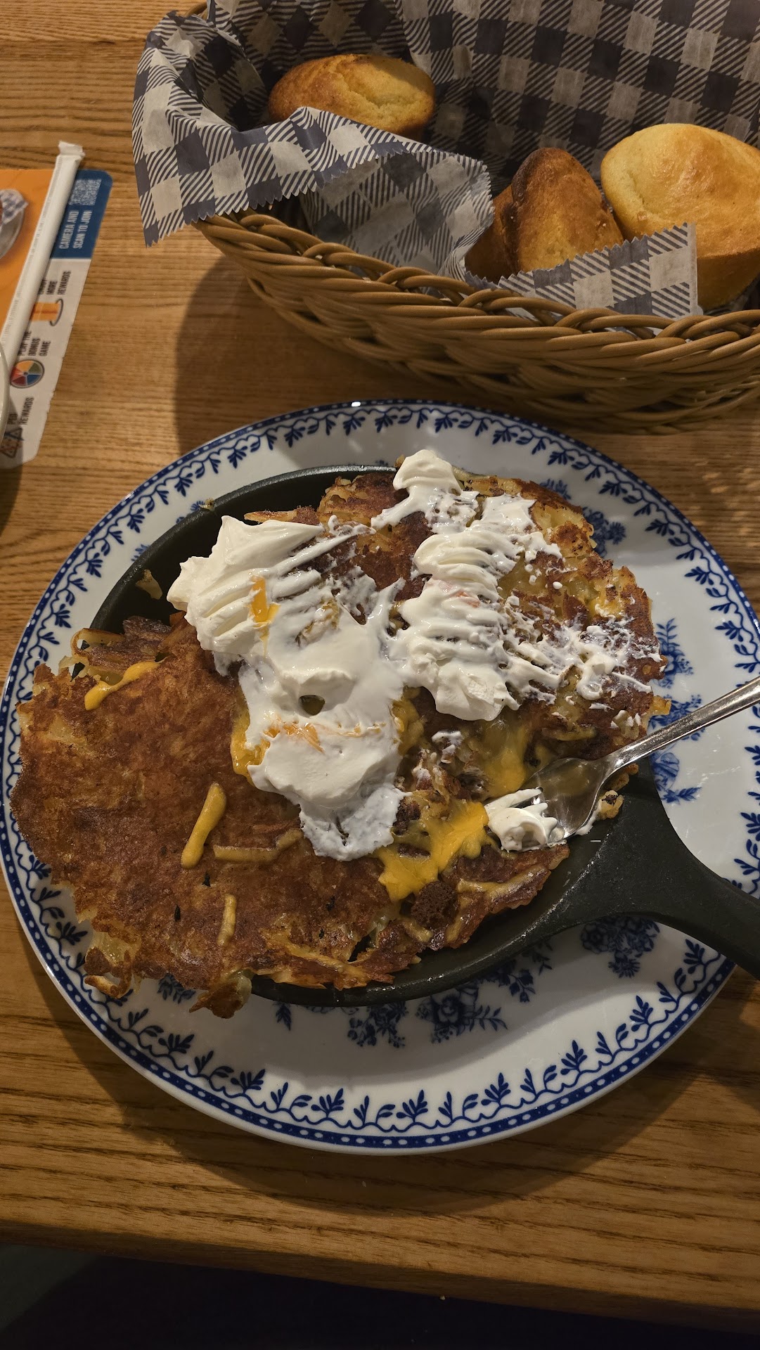 Well what I got did NOT resemble it’s picture from the website or menu. It was as if the top layer of hashbrowns (yuuuumm) had been placed on a bed of lumps.