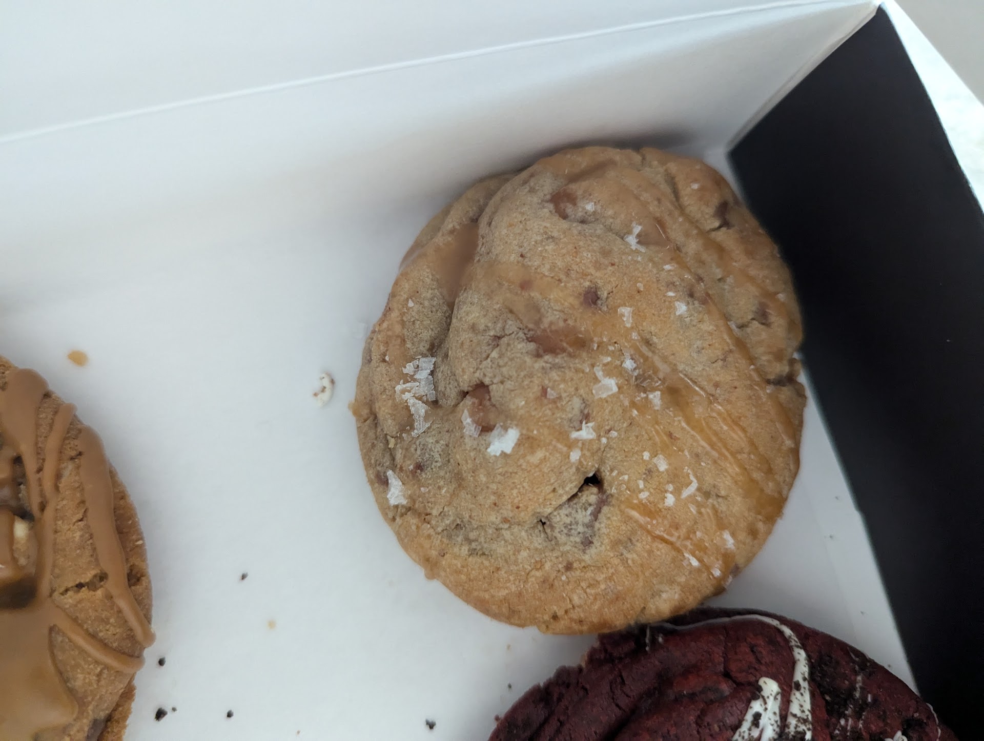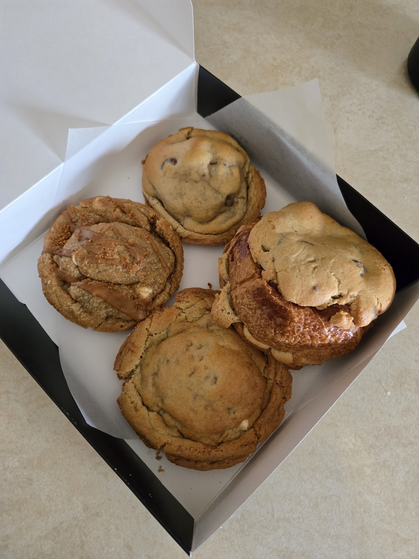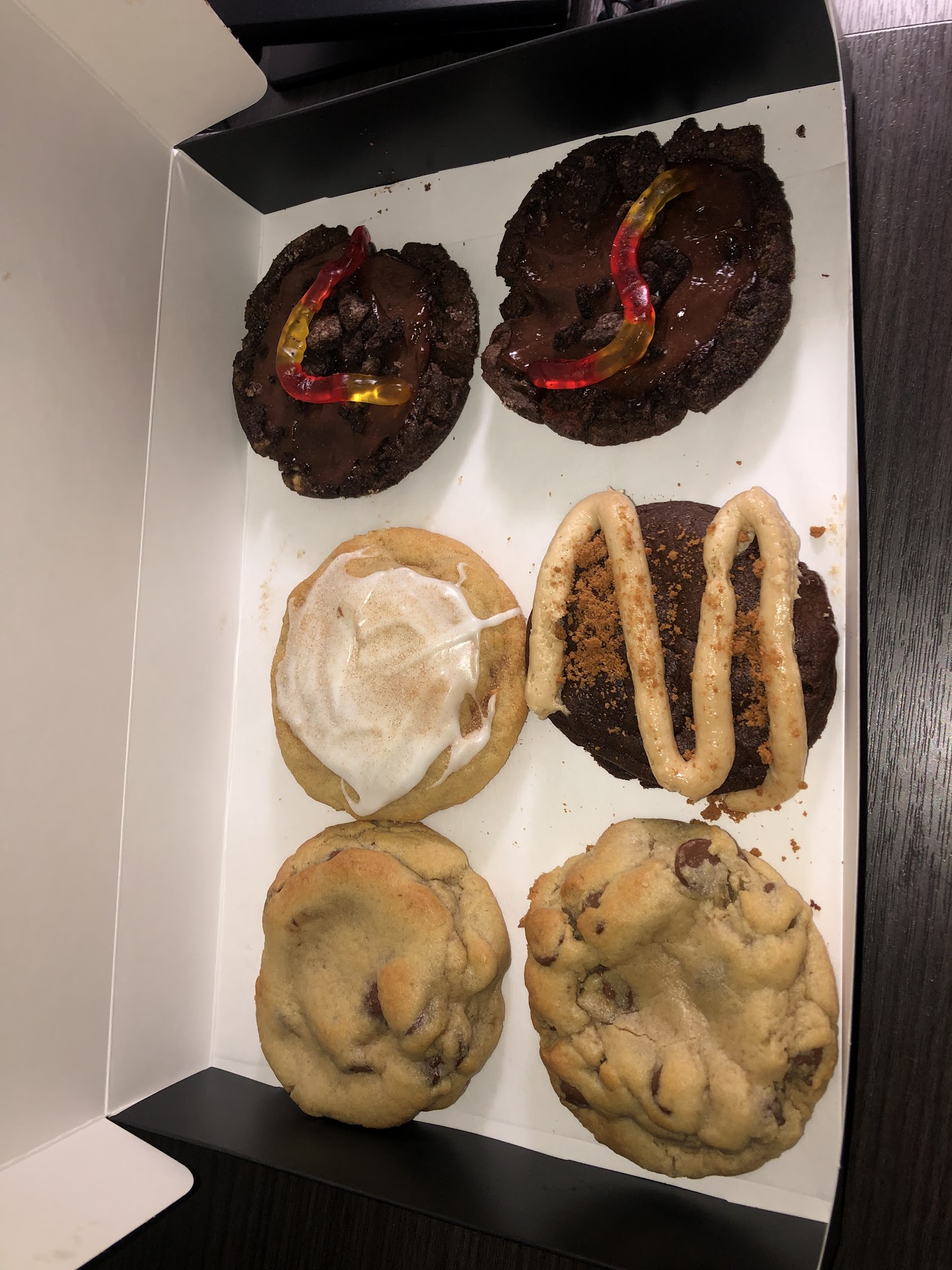 Read moreMy wife and I tried a six pack of cookies last week. It contained milk chocolate chip and semi sweet chocolate chip cookies. A snickerdoodle cookie with Cinnamon Toast Crunch on top; red velvet Oreo cookie; Biscoff cookie and a salted caramel Reese's cookie. I was surprised at how average the chocolate chip cookies were. Especially the semi-sweet cookie. They were very average. As was the Biscoff cookie. The snickerdoodle with Cinnamon Toast Crunch was interesting, and had a good cinnamon flavor. But all of the crunch fell off it. I thought the red velvet Oreo cookie would be my favorite, and it was good, but I didn't taste much red velvet or Oreo. On a high note, the salted caramel Reese's cookie was maybe the best cookie I've ever had in my life. I could eat those all day. The combo of caramel and peanut butter hit just the right note and it was soft without being mushy. That cookie was fire. I gave service and atmosphere 3's because I didn't go in the store. Cookies were decent overall, but not worth...