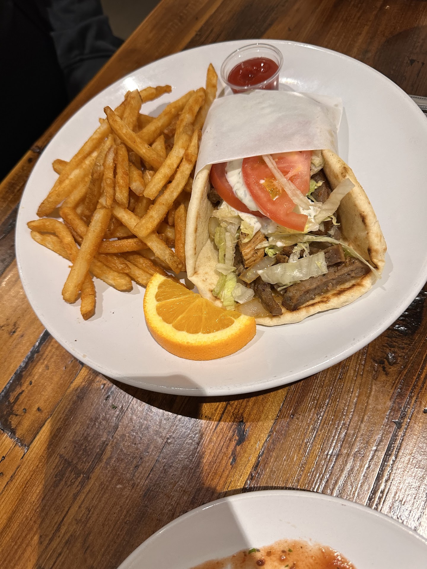 To their credit, when they saw we had drank all of our special lemonades before the food came out, they did provide complimentary refills. However, I drank mine slowly, and no refill would've been necessary if there hadn't been an hour-plus wait time. The food itself causes this to be a two-star review instead of a one; while it wasn't the best Mediterranean food I've ever had, it was pretty good. Fries were a bit cold, though.