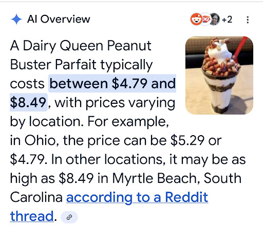 Read moreI have been going to this same dairy Queen for years now. I love the ice cream and it has usually always been a great experience. However this last time I went it was not!! When I pulled up to the window I could see them getting my order ready. Instead of someone coming to get my payment they continued to get it ready. When they finally came to the window I was holding my card to hand her. Instead of taking it first she handed me my strawberry sundae that was overflowing and then peanut butter sundae that was overflowing as well.Then she took my card and then gave me the blizzard that was not overflowing. I had to hand the sundaes to my daughter to hold while I did the transaction.In the process of it the strawberry sundae dripped all over my shorts my car and my daughters pants.When she gave me my card back I said wouldn't it make sense to take my money before you hand me ice cream that is dripping everywhere. She just said sorry then shut the window.Instead of offering me a bigger container to put it in or at least some extra napkins or wet wipes!! Needless to say I am very disappointed and hope that it doesn't stain my daughters pants. It's a good thing my car interior is black and I don't care about my...