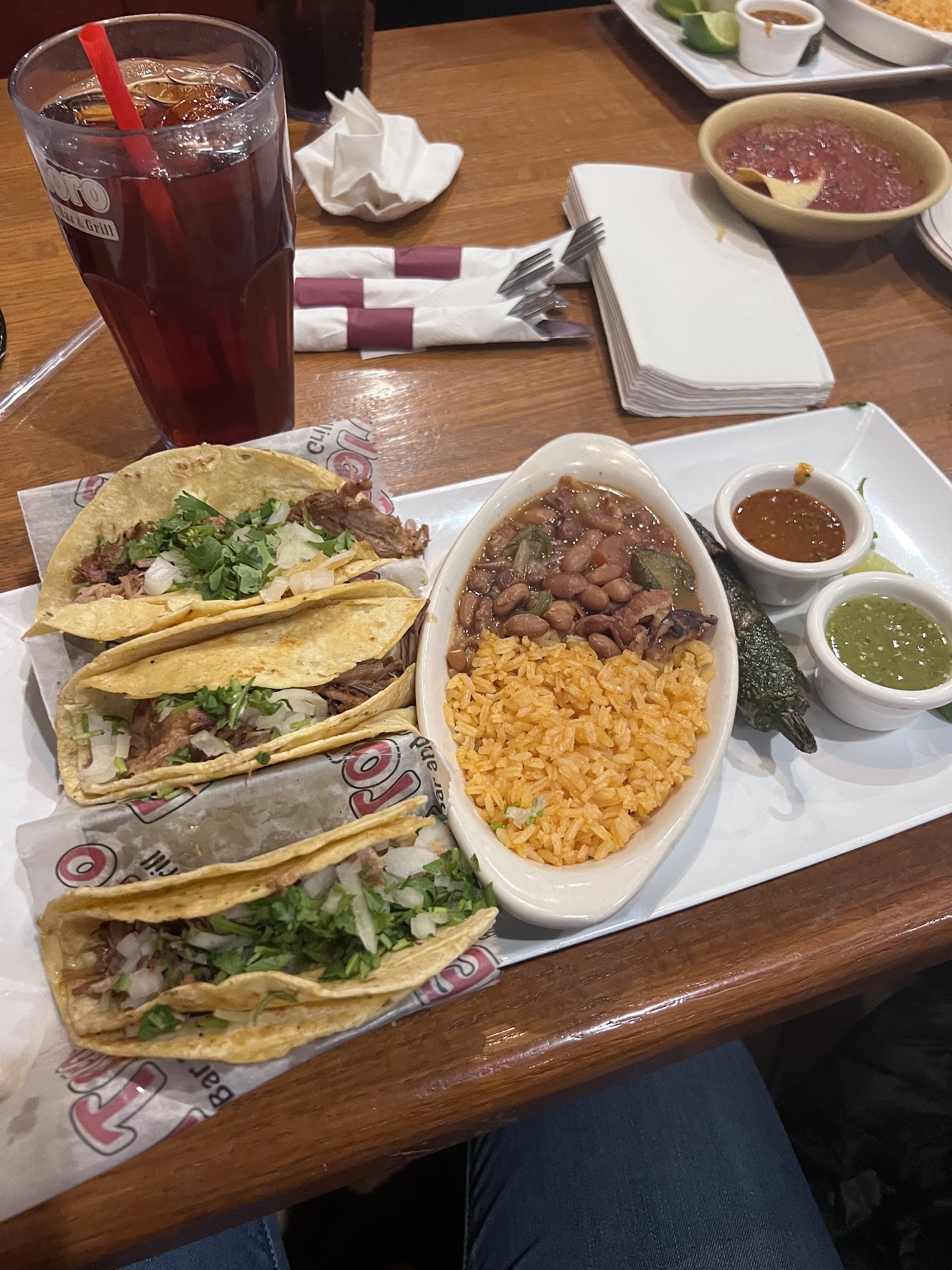 Read moreMy husband and I finally decided to try this place yesterday. We had only heard good things about this place. I was sadly disappointed from the very beginning. The chips and salsa were bland. I had to add quite a bit of salt just to taste it. We ordered the sampler as an appetizer and it was bland. I ordered the El Toro Molcajete. The portion was huge. I will say that but again it was bland. I had to add quite a bit of salt to it as well. I had a bite of chicken and the texture seemed a little off as if it wasn't quite done. I had my husband take a bite of my food just to make sure it wasn't just me because if it was, I wouldn't have written this review. We both woke up in the middle of the night with upset stomachs. He was also shocked at how bland it was especially compared to his meal. The flour tortillas were chewy which was also a little off-putting. I only had a few bites of my meal so we decided to go for dessert. We got the churros with ice cream. The churros were so tough and a bit difficult to chew.
