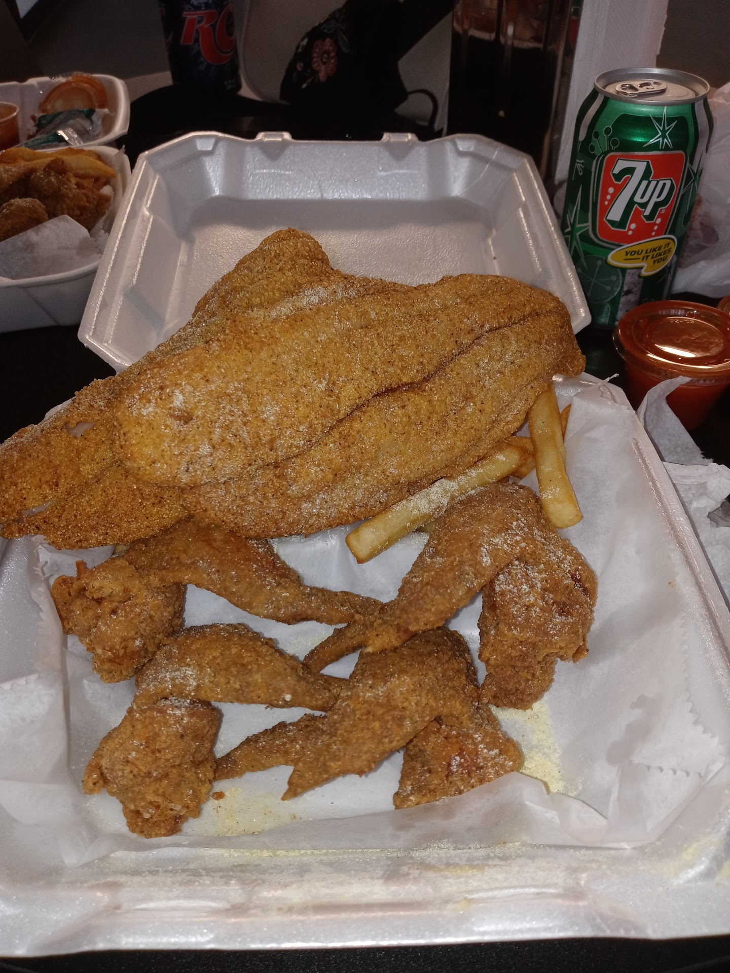 This is my go-to for fried fish! At one point ,and even still frequently, I get carry out from here more than once a week. If you love fried fish then this is the place. Great price for what you get. And I honestly would pay double that price if I it was priced accordingly. They also sell chicken, shrimp and more. Place is #1 in my book and ill forever be a customer. 5 stars across the board but I did give 4 for atmosphere. It's in the hood and set up with about 3 tables inside. Don't think ive ever seen anyone dining in. All the same...best place in town for fish. Thought Carter's held the crown...not even close..yeah....