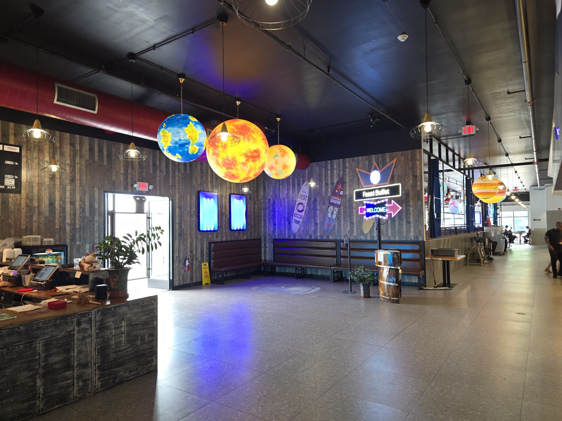 Read moreI must say... Feast Buffet wasn't bad at all! It was actually pretty Good. With 40 items on the main buffet line, 30 items on the salad bar, 12 different desserts and 8 soft drink selections. For a family of 4, we spent $82.58($20.64 a person) for dinner... drinks included. The atmosphere was pleasant, nice neon lights and wood grain decor.... The restrooms were clean and the waitress Latonya(coco) kept our area clean, constantly clearing plates from our table making sure we didn't need anything. Now for food taste.... I ordered from the hibachi grill(made fresh to order). They had 3 different sauce choices general tso,teriyaki and soy... I went with traditional soy and it was 4/5. They had beef, scallops, shrimp, chicken, sausage, and a variety of vegetables. No rice, just noodles... I asked the man for rice and he went to get some for me. The main buffet line was impressive lots of Chinese goodies, beef and broccoli, black pepper chicken, general chicken, chicken broccoli, crawfish,salmon,Mac and cheese, mashed potatoes waay to many dishes to name... just trust me... impressive. They also have a appetizer section with egg rolls, crab Rangoon, Chinese chkn wings, egg drop soup and hot and sour soup. The salad bar was loaded with plenty of extras as well.. including fresh fruit. The soda comes with the meal and it was self serve, so for you soda drinkers Pepsi products with Tropicana lemonade for non-carbon drinkers. And if you have room for the dessert... this one pie with chocolate crust whipped cream pecans and caramel was The Bomb!!! You gotta try it. In a world of familiar faces, let's just say I seen one. If you remember the Hibachi Buffet by Chucky Cheese, You will definitely enjoy this one. Same people, different location iykyk. 4/5 easy... definitely...