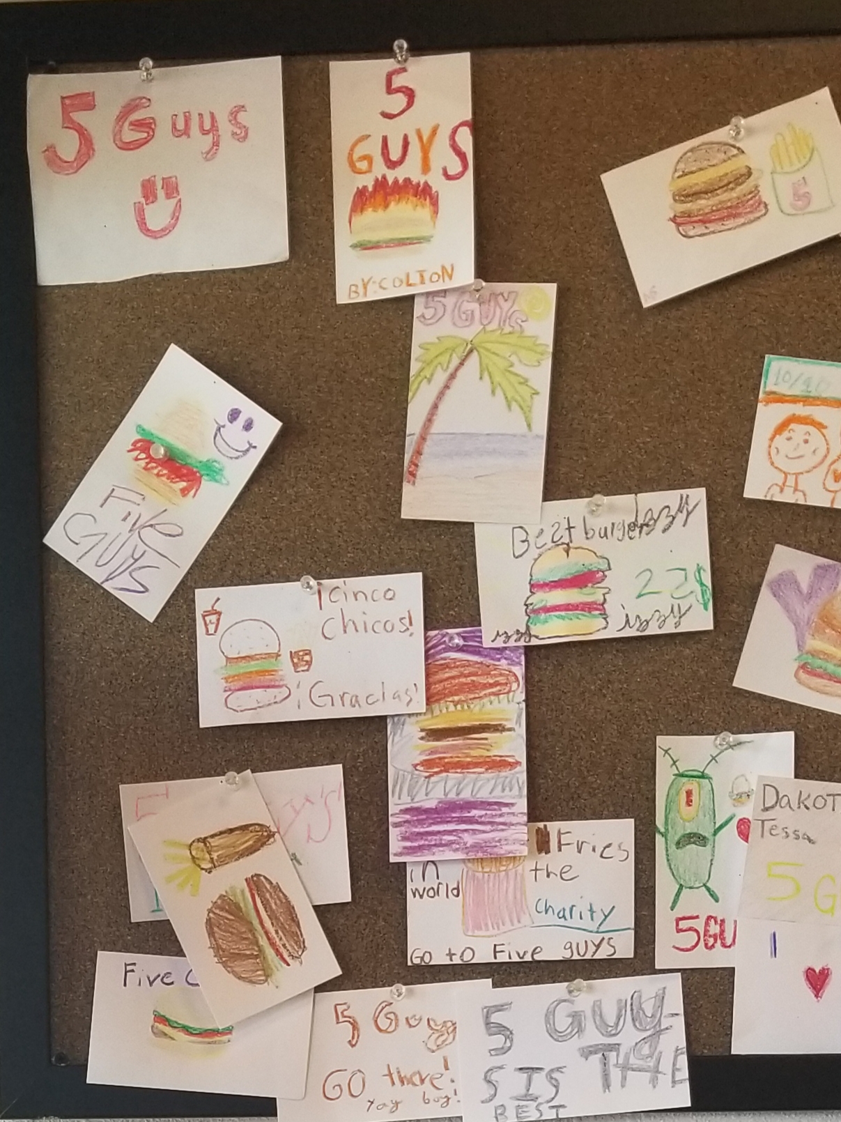 Read moreI really like five guys burgers. It's my favorite fast food burger place. I've never thought that you could screw up a burger but lately it seems as though the usual burger joints have become very poor in service and in food quality.... Seemed they've shrunk and use faked photos of food they've spruced up to make u think your getting quality food but it's no where close. They should get it for false advertising and five guys don't do that... Nore do they spend all their profits on advertising... Thank you five guys for using quality beef. Thank you for keeping your burgers basic and simple yet making them very flavorful and taste great. Plus generally staff is courteous and proficient and seem to work together with up beat attitudes creating a positive environment.... Other burger places it's easy to see the employees are over worked and under appreciated by the attitudes and you can tell the focus is on pushing out the food as fast as they could without much care to how it looks... Five guys is my first pic if possible. My only complaint is that they don't always have enough...