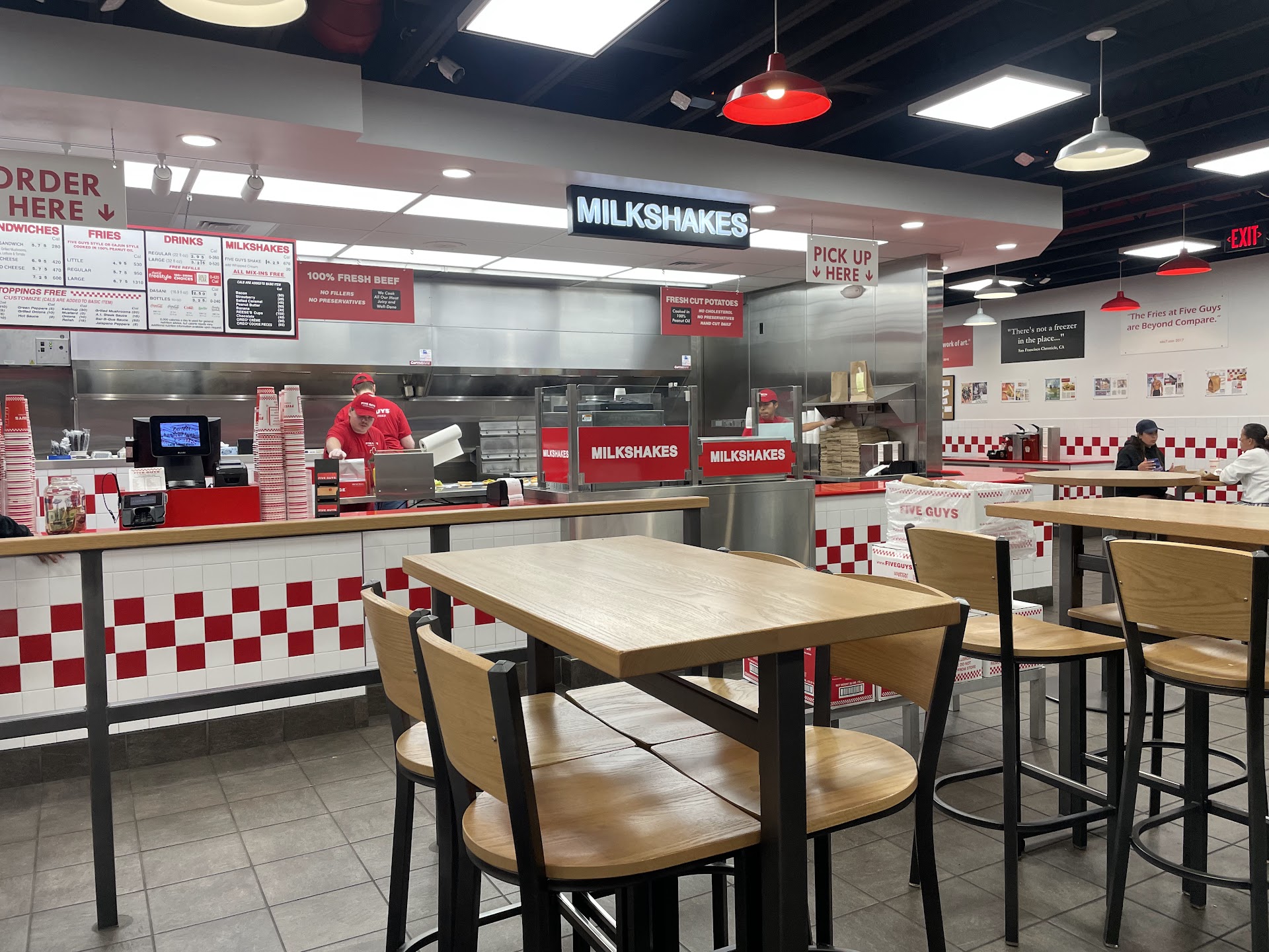 However this location takes the cake for the worst service I’ve ever seen at a five guys. We ordered two burgers each with customized toppings, a shake and fries. The burgers took over 25 minutes to be completed as there were a number of customers ahead of us. We got outside and unwrapped our burgers and noticed that neither of them were even close to what we had ordered. We went back inside, waited in line again, and the girl brought out a piece of paper to write down what we had wanted. We specifically watched her write down the order, then proceeded to cook all burgers from scratch, adding another 15 minutes to our wait. They wrapped up the burgers handed them to us we walked outside open them again and they were wrong a second time, they had mixed up ingredients between the two burgers. The manager did not offer any compensation or offered to refund us for our meal. 40 minutes later we left disappointed and $30 short.