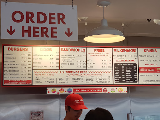 Things can add up fast, but at least the quality is there. The thing to be aware of at any Five Guys is that when you order a 'burger' it's automatically a double, unless you tell them that you want a 'small', which is their code for a 'single' patty.