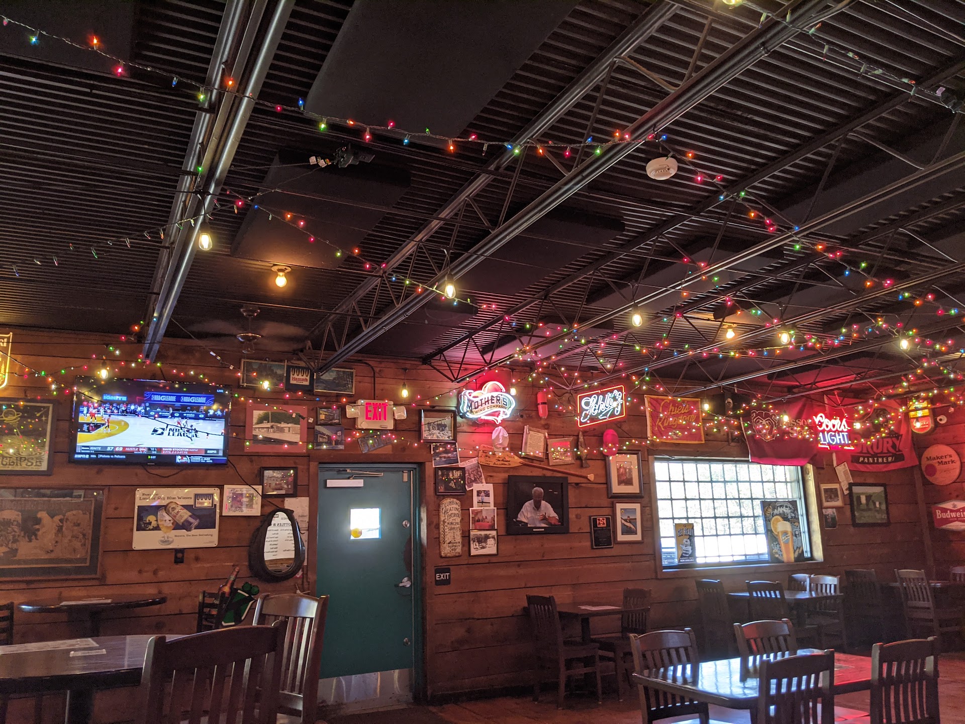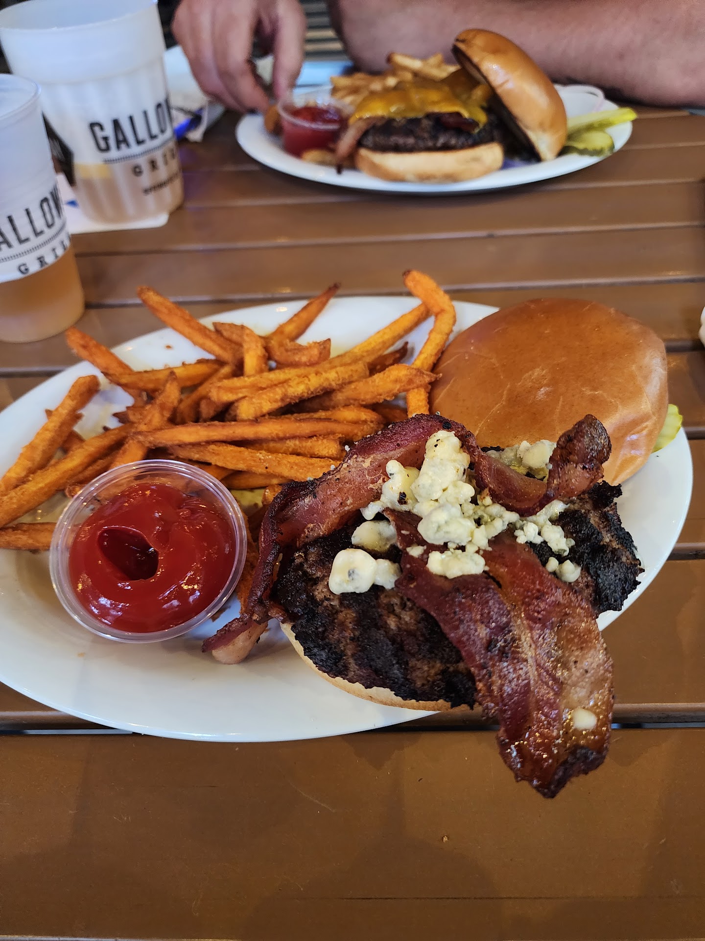 Read morethey serve mostly burgers and a few apps.. delicious meat flavor and decent size portions. we went on a Saturday evening for dinner and it was packed busy but they found us a spot on the patio.. patio could use a view, was literally a tent around it.. with no view, maybe it opens up with warmer weather.. they played some Tom Petty music which made me happy. My burger came with no condiments and there were none offered and none were on the table. I had to wait for the waitress to go get me some mayo took a couple minutes after I was served. Not a big deal but I'm sure most people want condiments and not kecthup on sweet potato fries IMO.. The food prices were decent but the beers seemed a little on the steep side with the size cups you got and the cheap bendy plastic frat house cups.. A couple having one beer each and one burger each, cost was $50 with tip. waitress was friendly and attentive even though it was very busy.. posted a pic of my blue...