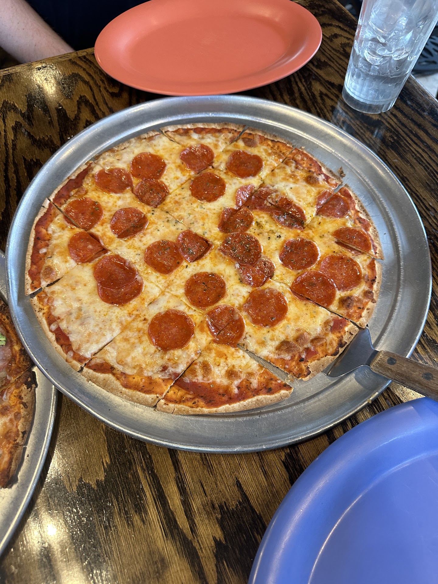 We've gone here many times before and it was one of our favorite places. This visit was a disaster. Our pink lemonade tasted aweful. I ordered a sweet wine and got brought the house wine, which was so bitter and nasty. We ordered a large Pepporoni and medium Bbq chicken. Well, the newly first day manager asks if the pepporoni pizza shes carrying is ours. We said we didnt think so because ours is supposed to be a large and that is a medium. She says, well if it's not theirs on the balcony she will bring it back to us and say it is ours. That surprised us all. Who makes you take a pizza that's not yours? Plus, when she brought it back because it wasn't theirs on the balcony, it was already room temperature. They came back 20 minutes later and asked if we was waiting on another pizza we said, yes. We still needed our medium Bbq chicken. They said it must have gotten Lost in the system and they will make it now. We was so irritated at this point. We finally get the pizza and finish eating, go to check out and the same newly first day manager was ridiculous once again. She tried to charge us for a large pepporoni when she clearly knew she brought us a cold medium pepporoni. They also tried charging us for 3 large salads when we only had one. Service was aweful, food was aweful, and drinks were aweful other than the 2 beers and salad that was ordered. Our check was $69.00 for what we got. It's never been that high before for what we got. I'm not sure we will...