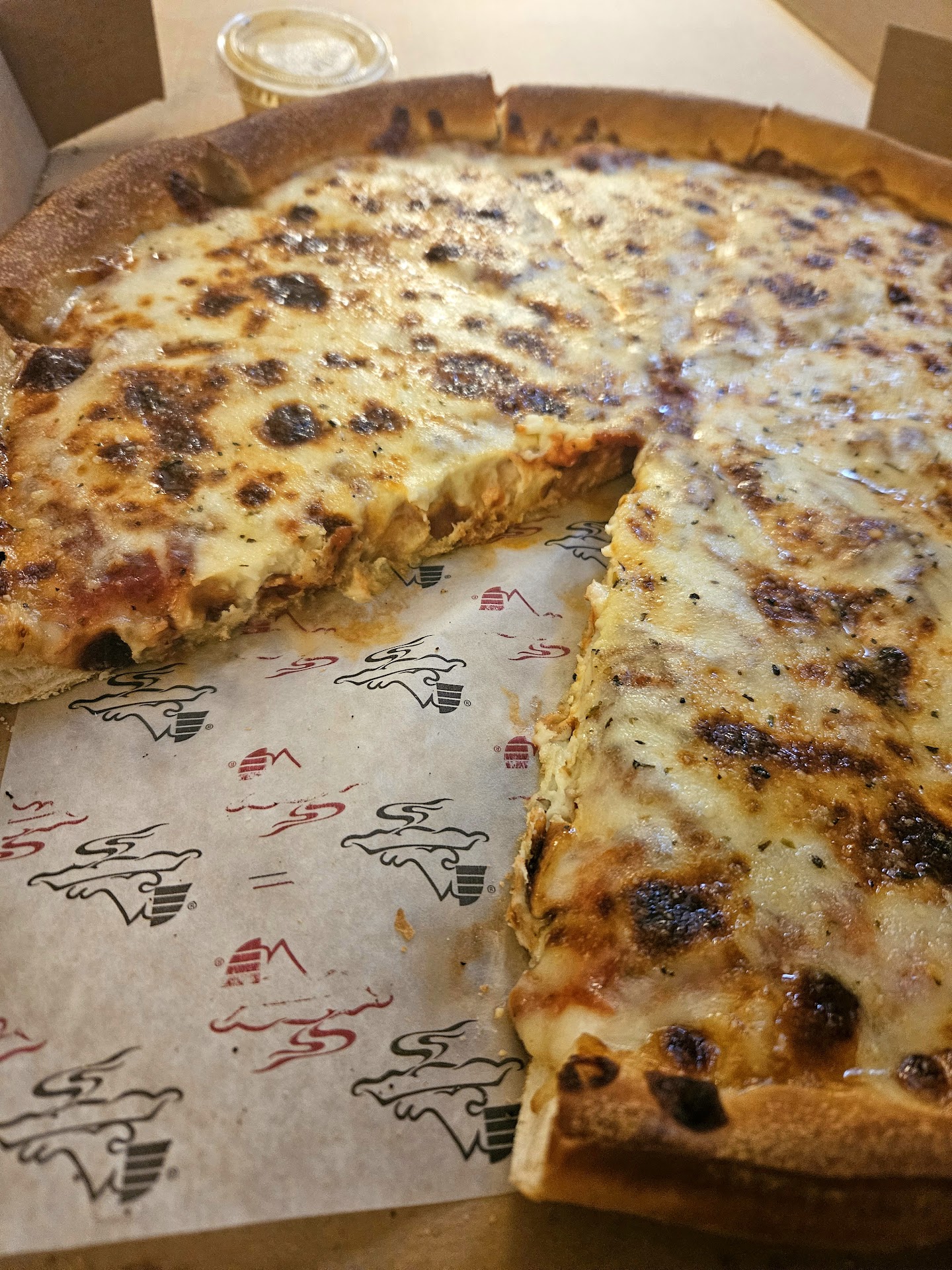 Read moreWe seated ourselves because there were no employees to greet us (and no sign). After sitting for about 10 minutes I walked back up to the front counter to ask for service. Two employees were there, one couldn’t help me but did give me menus. The other saw me but was on the phone. After sitting for several more minutes with no sign of anyone my husband went to the counter to place our pizza order and ask if we could get drinks. No sign of anyone for quite some time so then I also approached and finally saw an employee (the one on the phone earlier) but he walked right past us without acknowledging us. He was busy taping up a hand-written sign to reserve an area. When I stopped him to ask if he could help us he said he would be with us “in a moment”. I reminded him that we had already been sitting in his restaurant for a while. He then asked if I had come up to the counter. I said “yes, I talked to the other man up here!” So then he asked it I had talked to himself... at this point we were out of there. We went on down the road to Pizza Hut on Chatham Rd. They greeted us immediately, had drinks on the table and orders taken within five minutes. Food...