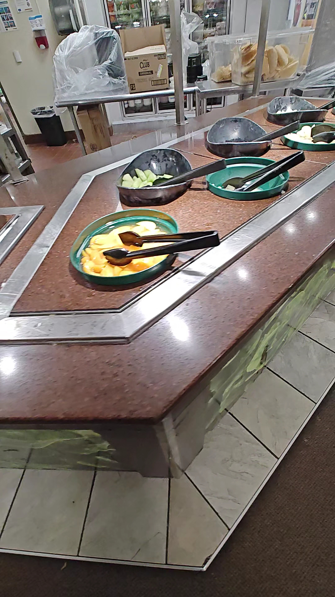 Not related to the staff, but the clientele was extremely rude. Cutting in line, letting little kids run amok with no supervision, taking the whole tray of food for themselves so no one else could get any. The staff tried to do an announcement over the intercom but the audio was so garbled and the customers so loud I couldn't even hear what was being said. People acting like that movie The Platform trying to get dibs on fresh food that took 20 minutes to be replaced.