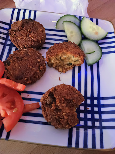 We arrived at 4pm, it wasn't very busy, and we didn't expect it to take long for our food but we were very wrong, and even with the food being very freshly cooked, we were pretty let down. Let's start with the food... Everything was so dry. We tried the falafel meze, and normally I'm a huge fan of falafel. However, this falafel was so dry and overcooked that we couldn't eat it without some sort of dip. I tapped the falafel pucks on our plate and it legitimately sounded like I was tapping a hockey puck on the plate. How they don't serve it with a dip is beyond me. We asked for a side of tzatziki to help make this edible, which we later found out from the bill was an extra $1.25! After waiting over half an hour, our food finally arrived and we were very disappointed with the results. I ordered the chicken gyro plate which was not great...the meat was COLD and very dry. It should never be that way based on the way the meat is cooked on the spit. My husband ordered the Kraken which he enjoyed more than I enjoyed my dish, but he still ended up opting to eat everything out of the pita since the ratio caused the dish to be really dry as well. Next is the service...nobody ever asked us how the food was so we never got an opportunity to ask them to correct the issues we had. Even after the waitress saw we were finished eating pretty quickly, there were no questions about how we liked the food, only up selling for dessert. If I didn't bother finishing my food, why would I want dessert? As for the atmosphere, I would love it more if they would repair and repaint the walls that have multiple holes covered by decor, and the paint on the walls looks like there is grease dripping down the walls. The seating is extremely...