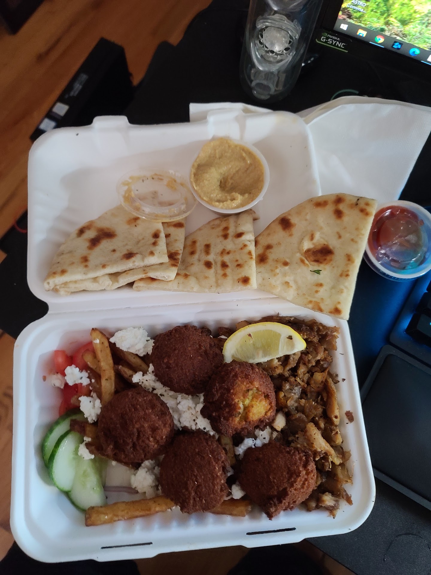 Read moreI have eaten here quite a bit since they opened up and the start was rough but it got way better and I would carryout here regularly as it's on my street. The food quality is great 80 percent of the time. Sometimes it's so-so but I usually give it another shot and they come through. I ordered takeout here for my last visit and it said to pick up my items for me and gf around 25 mins from then. We just ordered a salad, gyro wrap, and fries. I got to the restaurant 30 minutes later and when I arrived I came up to a blonde lady and told her I was there for a pickup, she saw no one had made my order at all and told me to wait and started helping other people. I went and sat down at a table with gf and waited around 25-30 mins and then got tired of it and went back up to the server and asked her what was going on. She said it would be out soon and was out a couple mins later. There was like 0 value on my time and no acknowledgement that they just flat out didn't make the order I placed until I got there and she helped out the whole room first. This experience was awful and if I didn't live down the street would have asked for my money back 15 mins into waiting. The food, restaurant itself, location, and owner are great. I simply just don't want to go through what happened again so I'm hesitant to order from here for a bit.