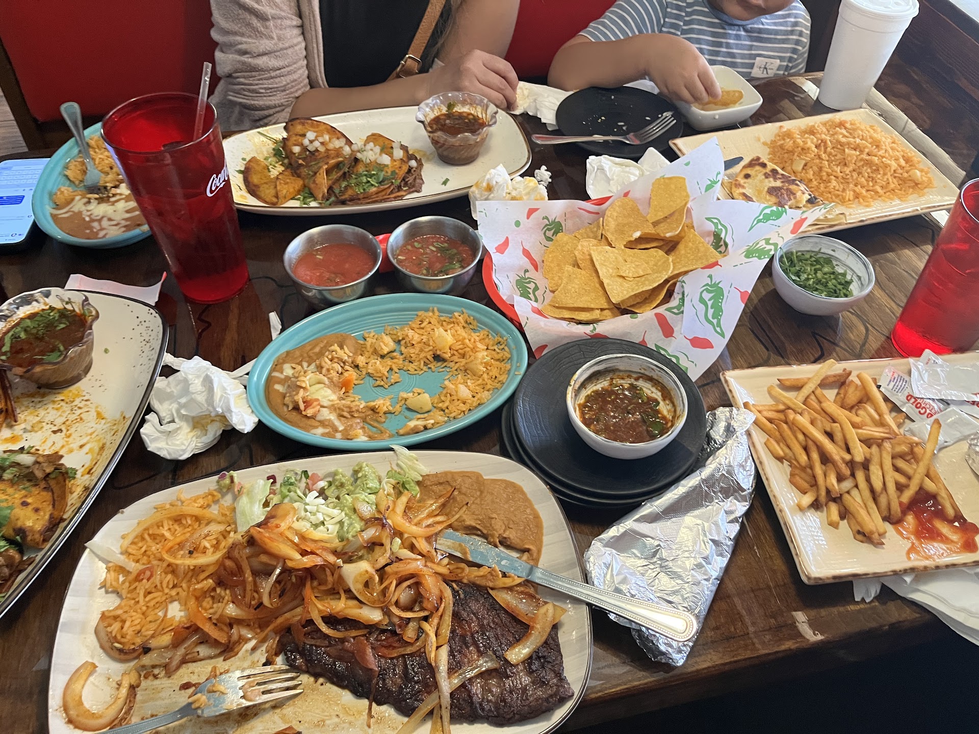 Read moreThe beef nachos come with queso dip. They were quite tasty. The beef cheese chicken enchiladas were just ok. The refied beans were so bland. I only took two bites but the rice was decent. Just typical Mexican rice. The issue here was the service. Table of 14 so yes that's a challenge however why pick a job that will require you At times to have a large party that will be a bit chaotic? Our servers attitude was awful. The look on his face each time he came to our table told us he would rather be anywhere else but there. Now I can't say for certain about the other end of the table but on our end, we were pleasant to him. Yes sir, please and thank you, etc ... The only thing I can think for our side that agitated him was us asking menu questions. This was our first time here and customers are going to want to ask about what they're getting. Like "Are these nachos with queso dip or shredded cheese?" Lol. cause I do not like shredded cheese nachos lol The table recieved wrong items, were overcharged on things. My mother told the waiter she didn't like the fajita meal. It was HORRIBLY bland compared to what we're used to in Texas. Well the waiter snatched the plate and ran off. No apology, no what would you like instead. Eventually she was given another menu to see what she wanted instead The waiter then came back around and placed something on the table and ran off just as I was trying to ask for a couple of small plates. My nachos came and a couple family members wanted some but of course they need their only plate and we weren't given any. When the waiter walked off I gave it a minute for him to return but he didn't. I got up to ask another person and I hear some say that's poor restaurant etiquette to ask another waiter to do something when you're not their table but I felt like well it's just plates. So I asked a lady that was just standing there for a couple of small plates. She said ok. She came back and put 3 BOWLS on the table...?????? I didn't say anything to her or our waiter but i thought to myself how in the world did she think l said bowls??? I did end up tipping our waiter 20% for my own ticket because despite his very poor attitude, he still did what was necessary for a table of 14 where management apparently decided 1 waiter for all of...