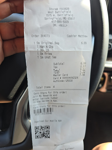 9/18/22 revisiting this Hardee's. I was greeted as soon as I walked in. When I got to the counter an employee came over immediately and took my order. He was smiling the whole time. He gave me the senior discount (I do not know if I qualify for it, and I am not going to ask. Thanks for the discount 😁😋) I got the double western bacon 🥓 cheeseburger 🍔 . And it was AWESOME. It was hot, the bacon was cooked right and tasted awesome 👌. The fries 🍟 were freshly cooked and hot. The soda what can I say, it was cold and wet. The employees are AWESOME, I did not get the employee name that took my order but he was nice and knew what he was doing with my request. This was an awesome experience. Hardee's #1503828 your AWESOME 👌 keep up the good work.