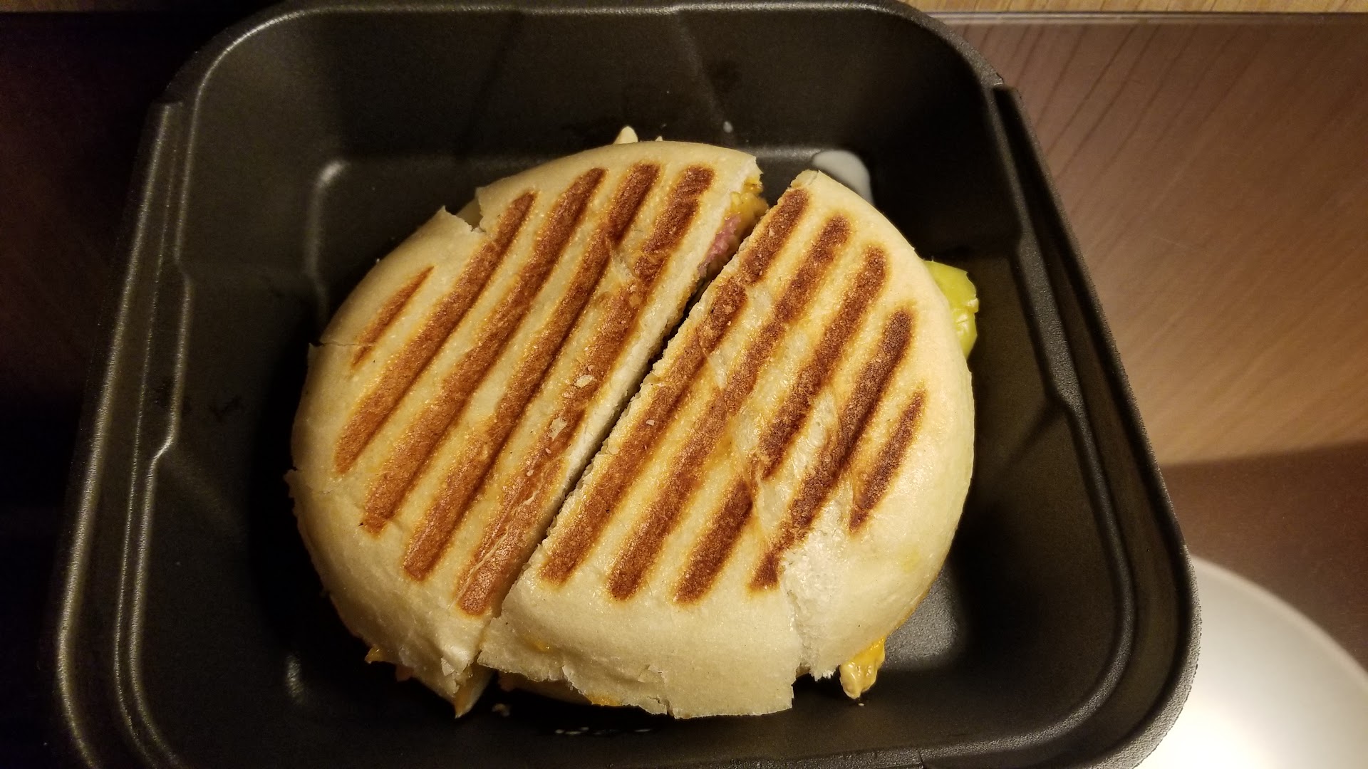 The steak and cheese panini was delicious, warm and melty with good flavor, but it fell apart and was messy to eat. The lil bro ordrered the cheeseburg and he wasnt impressed, but we ordered it plain so it probably lacked flavor. Tuna got good reviews. Service was fast and friendly and bathrooms were clean.