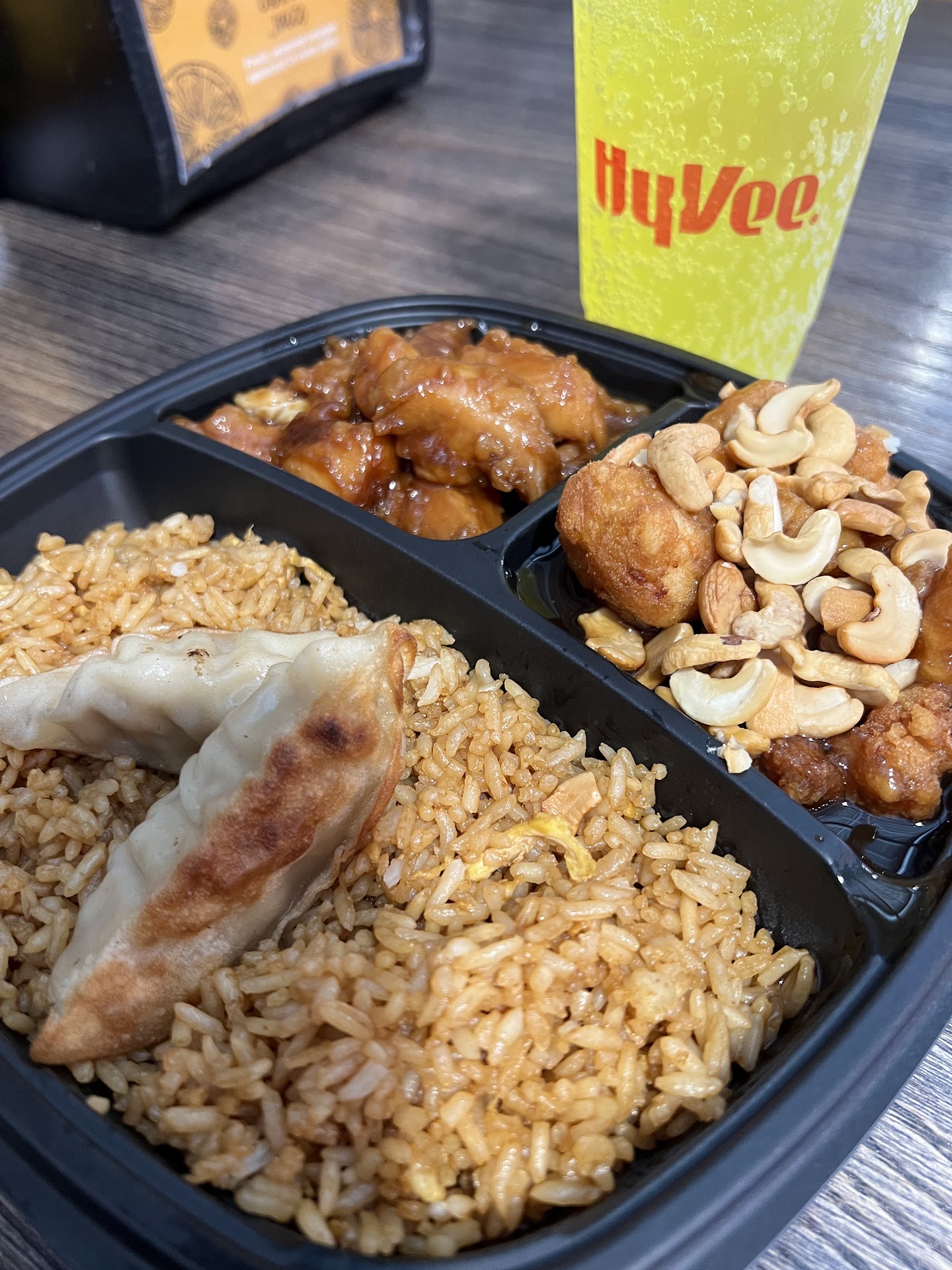 Surprisingly, there were more differences than I expected between the two Hyvee locations. This breading was closer to a corn starch breading than the other. The chicken here wasn’t dry. I’d still like a mix of white and dark meat. Sauce was no longer overwhelmingly sweet, but still slightly sweet. It was for sure one of the better sauces so far. No green onions even though I said “yes” when they asked if I wanted cashews and onions. The rice was more fried than the last, but still had that “sat in an open warmer” texture. It had little flavor too. The side options were the same, but the pot stickers actually looked like they stuck to the pot. The teriyaki chicken wasn’t as good as the cashew, but was miles a head of the orange on Battlefield. If you want grocery store cashew chicken, go to Hyvee...