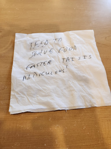 Alexa and the unidentified manager (no name tag) went to a back room where a discussion took place. It was then that in plain view for all customers to see and hear, Alexa replied to the manager “I DON’T CARE THEY CAN EAT SOMEPLACE ELSE!” So we did.