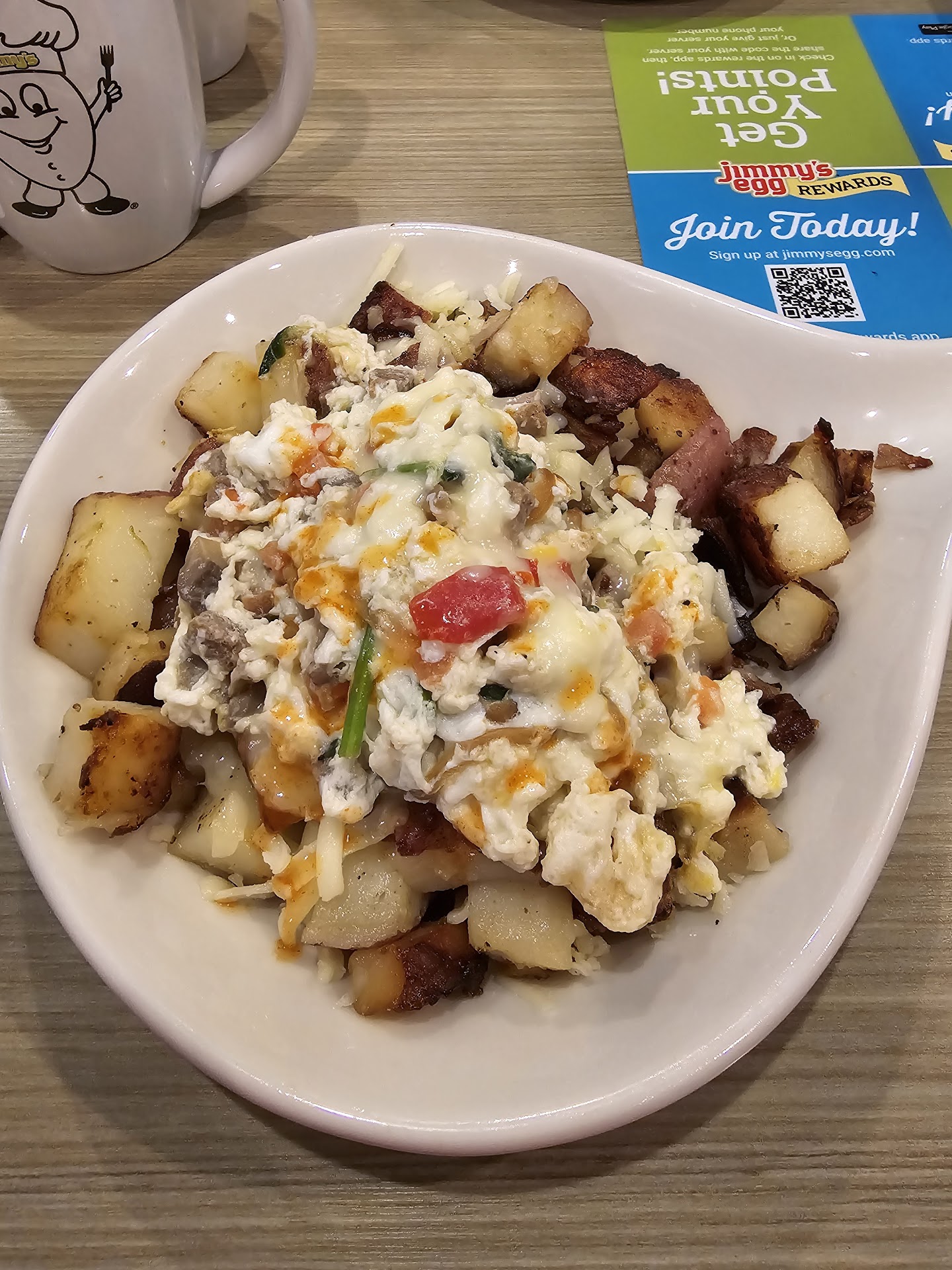 Read moreI really truly hate leaving bad reviews for places. However this place earned it. Before we even sat down, the waitress poured coffee for us. Didnt even ask if we wanted any. When we saw the bill, we had been charged for it. In addition to the hot coffee that I didn't want, I ordered an iced coffee. I had about 4 sips and it was gone since it was mostly ice. The breakfast of eggs bacon, hashbrowns & toast was soooo bland. I thought I was coming down with a cold because I literally could not taste anything. It was a huge relief to find out that my husband's food was also tasteless. We travel around the country trucking, so we have plenty of experience of good food and bad food, and then there is just the food that is edible but not great. Unfortunately Jimmy's Egg cannot even be put into the category of Denny's food. I have never experienced this problem before where bacon doesn't taste like bacon. I mean, even bad bacon tastes like bad bacon, no matter how overcooked, greasy, or flabby it is. I'm sorry, it's a no go for me. To each there own, but I will never eat at a...