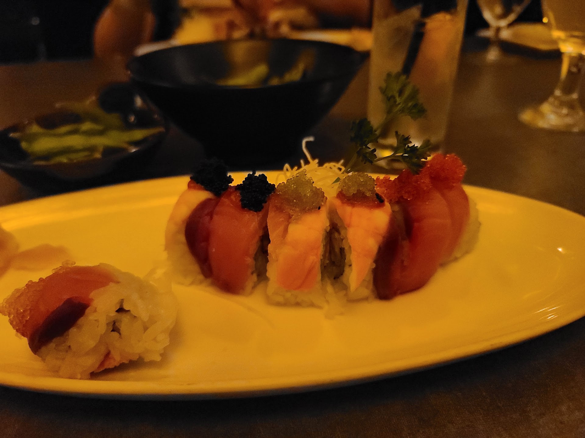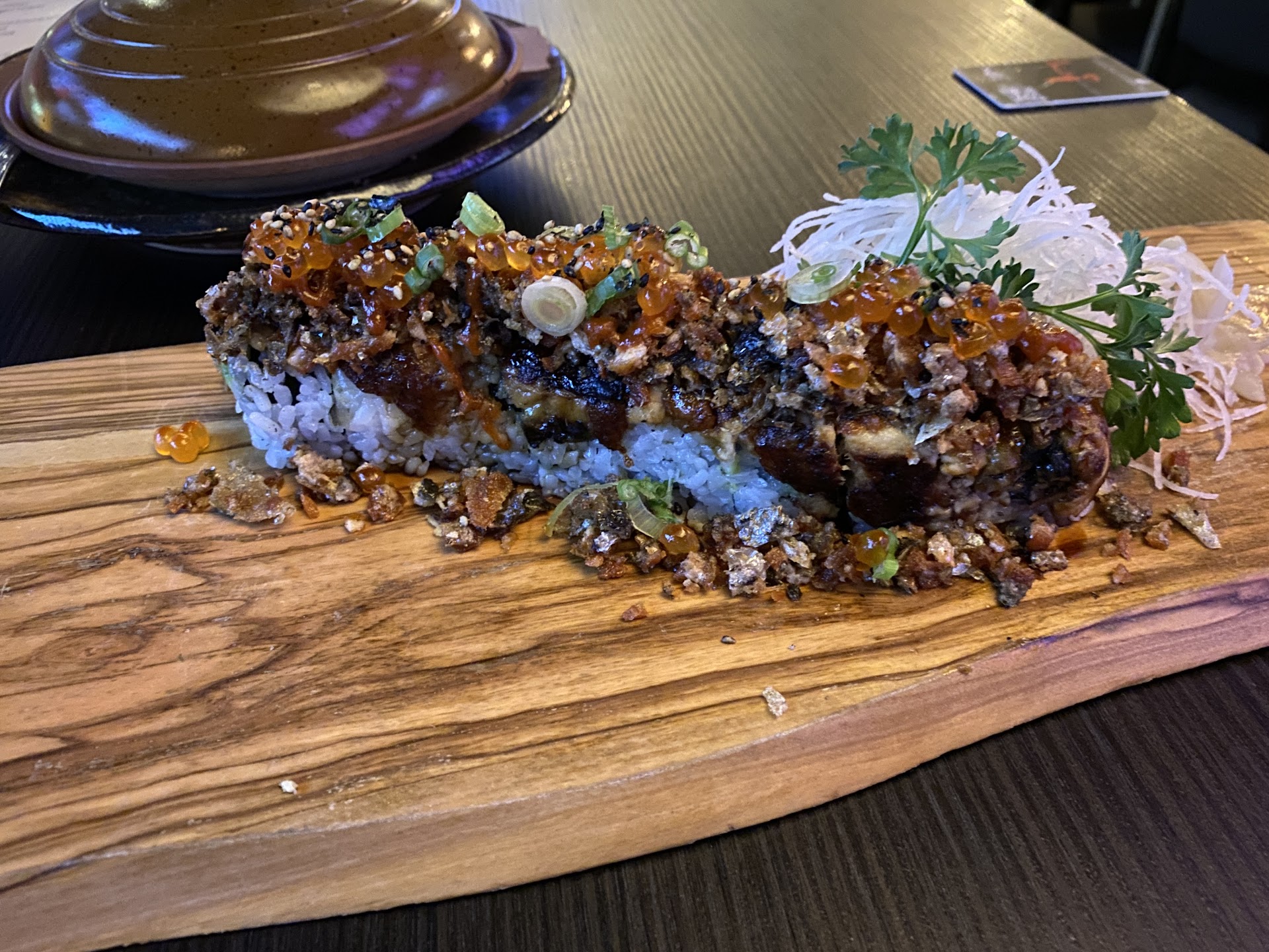 Read moreWhere to begin...I’m really torn as I write this. I happened upon this spot as I was in there area and needing some dinner. After glancing at their menu and noticing the Star Wars roll I decided I needed to jump in! That roll by description spoke to my soul and I needed to experience it. I also love me a good Korean short rib which is on the appetizer menu to confirm my decision. After speaking to the extremely friendly and polite bar tender she reassured me that the Star Wars roll was def the way to go and when asked about portion sizes she said the short ribs were a good portion and so I opted for the full order at $20. Before I continue about the food let’s pause for a moment so I can brief you on the ambiance. The place was warm and social and I really enjoyed the feel of hanging out at the bar with several TVs on the back drop...ok ok back to the food. So I was eagerly awaiting the arrival of my meal and from the jump I started to get concerned. The roll showed up first and for having crab, shrimp, eel, roe, skin in it I was really hoping for a much more appealing presentation but as you can see it was just a...sushi roll. Now in this case looks were deceiving as the roll did in fact taste every bit as good as I had hoped and then some but for a $19 roll I also kinda assumed it would be a bit larger than a typical any roll. Next up was the short ribs conveniently delivered under a clay lid. After lifting it I understood why. For a full serving at $20 I was severely disappointed. Not just in the size of the portion for the cost but the flavor was practically impossible to savor given the size of each bite/rib. For value I would not recommend ordering this item and it’s hard for me to give a true review of flavor with such a small opportunity. Now through my meal I was still hungry and ordered up some unagi sashimi and masago sushi to cap off my night. They were delightful and fresh in flavor but hard to get over my short...