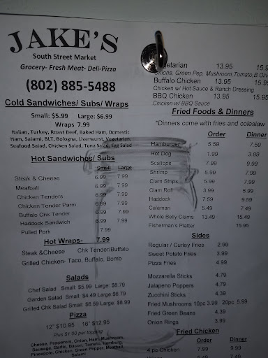 So I heard about Jake's from someone at work. I decided to go there and give it a whirl. The fist night, I had steak and cheese bomb. It was very good. They used fresh shaved beef. I had them put Monteray jack and mayonnaise on it. Very good meal. The next night I ordered their meat lovers pizza. That too was good. Other told me a half hour,. I got there at 28 minutes and they where boxing it. So very precise, professional, and assistive at this place. They also have fresh meat they sell here. I am told they have the best hamburger in town. It is a convenience store as well,. You are able to get chips soda, beer, and other things as well. If I have to say something negative,. They put you hot tub in a plastic container. It causes it to sweat and become soggy. I only live down the road, so my grinder was just a little soggy. But all in all it's a good place to...