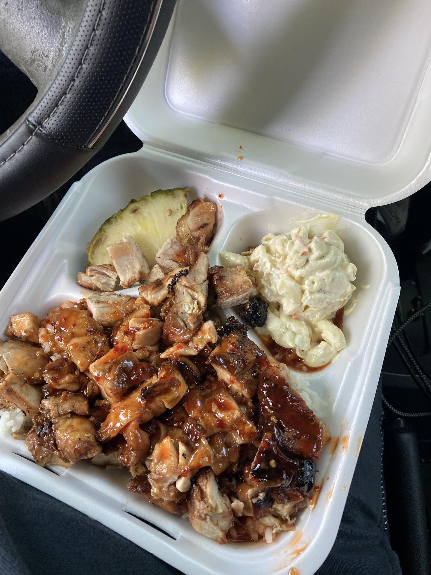 Grosssss gross grossss.....worst food ive had sonce I've moved here. If i could give them less then a 1 star i would. First off super dirty work space, open kitchen so you see everything. The food was super overly salty ....and practically got no pork which was half of what we order... but the real kicker the real reason my bf and have agreed to never go back again, is the food was old and smelled & tasted like mold... i was sick for a few days after this. I immediately went to my favorite sandwich shop to try and get rid of the sick feeling and taste from my mouth .... we spent if not as much but more money to go get better food right after. Because we had to throw away our food amd leave. I told the entire staff at the sandwich shop not to go...to even avoid it at all costs. The meat was gross, the bbq sauce was funky something was super off about it. The valcano chicken was literally chicken with sweet & spicy red chilli sauce from a bottled poured over are entire meal...ALL OVER.. So much sauce i couldnt even take more then a few bites before i stopped eating. The pineapple in the pineapple rice was old rancid, along with the cabbage which made my bf i both instantly sick. Never ever go here. I read reviews before i go to new places and i wish i could have had better info before I wasted my time and money on this place. This is not Hawaiian food, anyone who has had Hawaiian food would instantly realize this...
