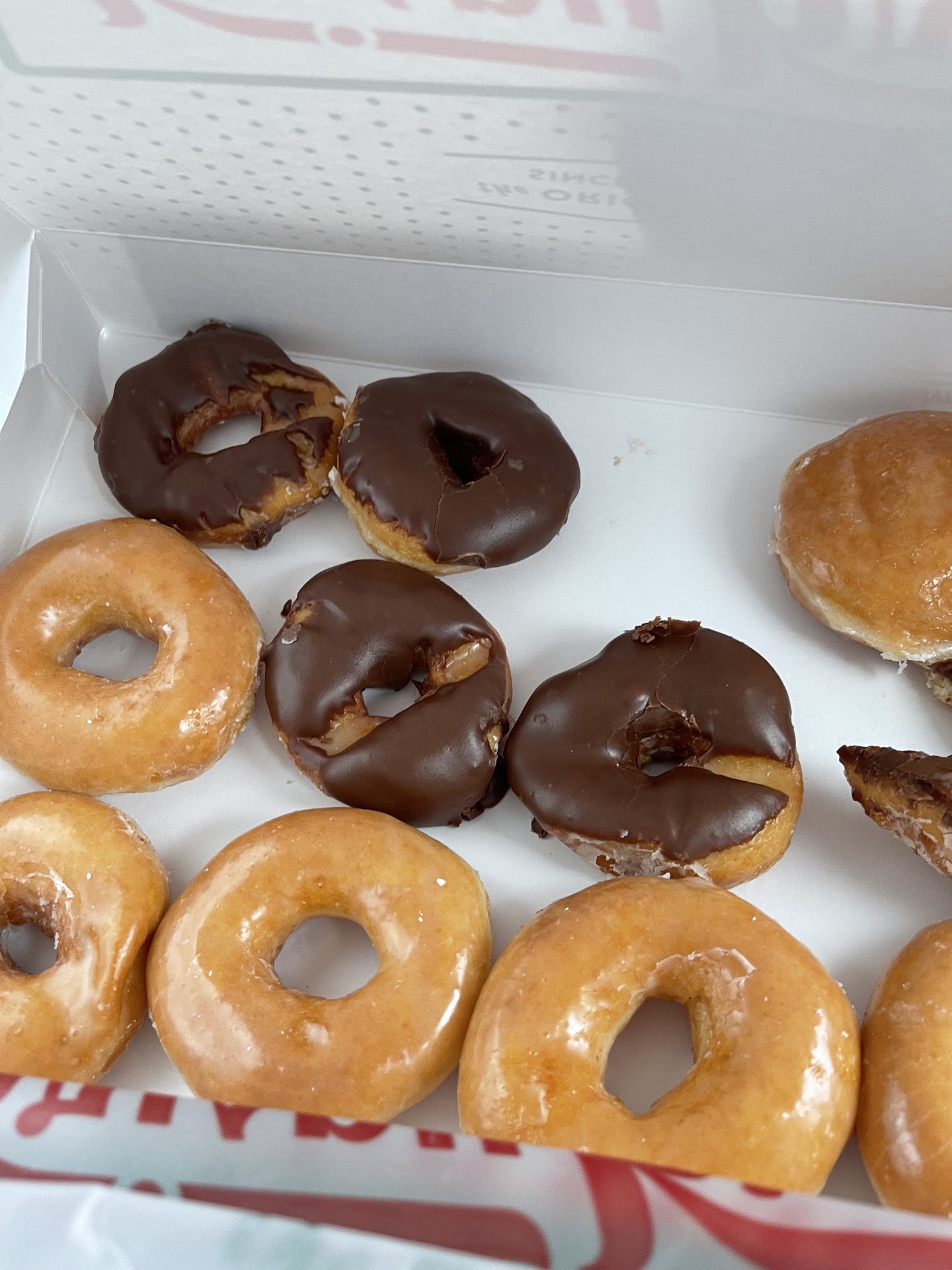 If you pick up a dozen glazed and they give you a prefilled box box double check them for freshness before paying. The box I got were AT LEAST 24 hours old as they were halfway to hockey puck status. By next day they had to be microwaved to be edible. Just gave one to my dog and she chewed on it for a solid 30 minutes, mind you I just bought them Saturday afternoon and stored them in a ziplock freezer bag like always. If you're gonna sell day old donuts at least advertise them as such and discount them. Instead of charging customers full price for half quality. Nobody has any kind of self respect at their employment anymore. It's a world full of throw away jobs with throw away employees. Employees don't care about their jobs cause they just go to McDonald's next door for the same pay, and employers don't care about employees cause they'll just replace them with the next person just working for the next pay check. I don't live in Springfield, just happened to be in the area, so it's easy for me to avoid this, I can just as easily stop in Bloomington where I've never received quality like this. But I sure hope the residents of Springfield don't accept this. Absolutely abysmal for Krispy...